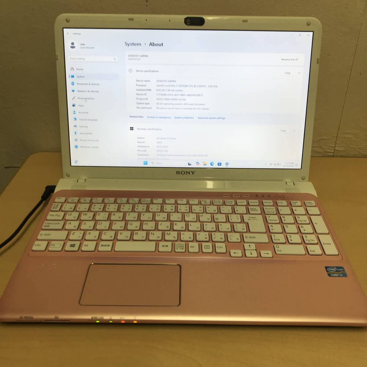 | SONY VAIO SVE15127CJP Intel Core i7 3632QM 2.2GHz/8192MB /Storage-SSD 256GB/15.6" Wide Display/W-Cam/W-Lan |