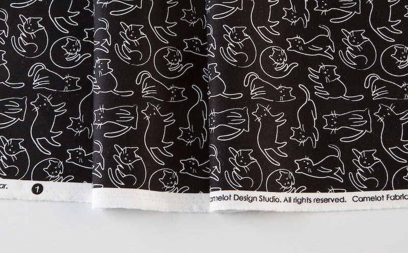 シンプルな線画のとても可愛いネコを生地全体に散らばらせています。
