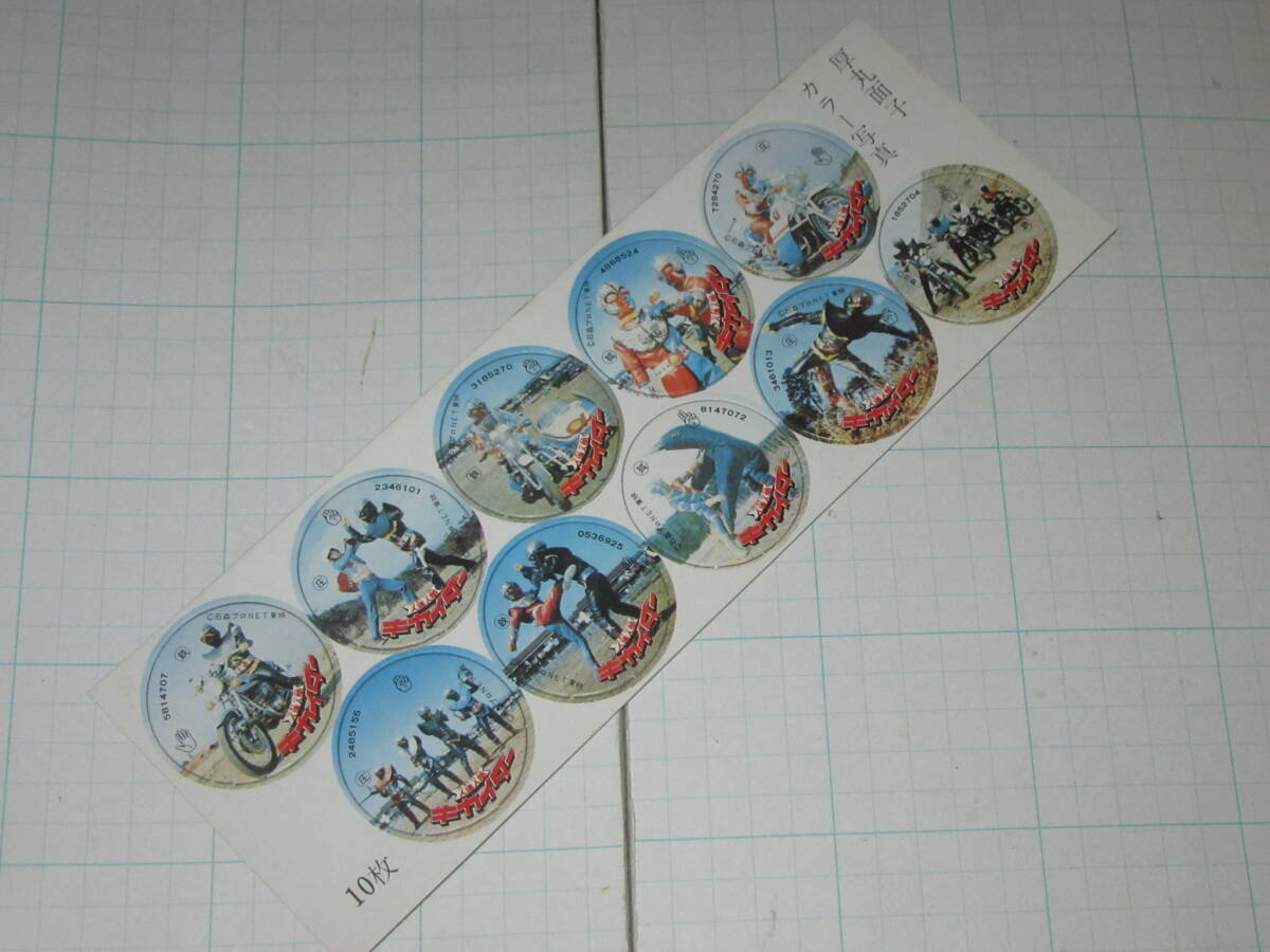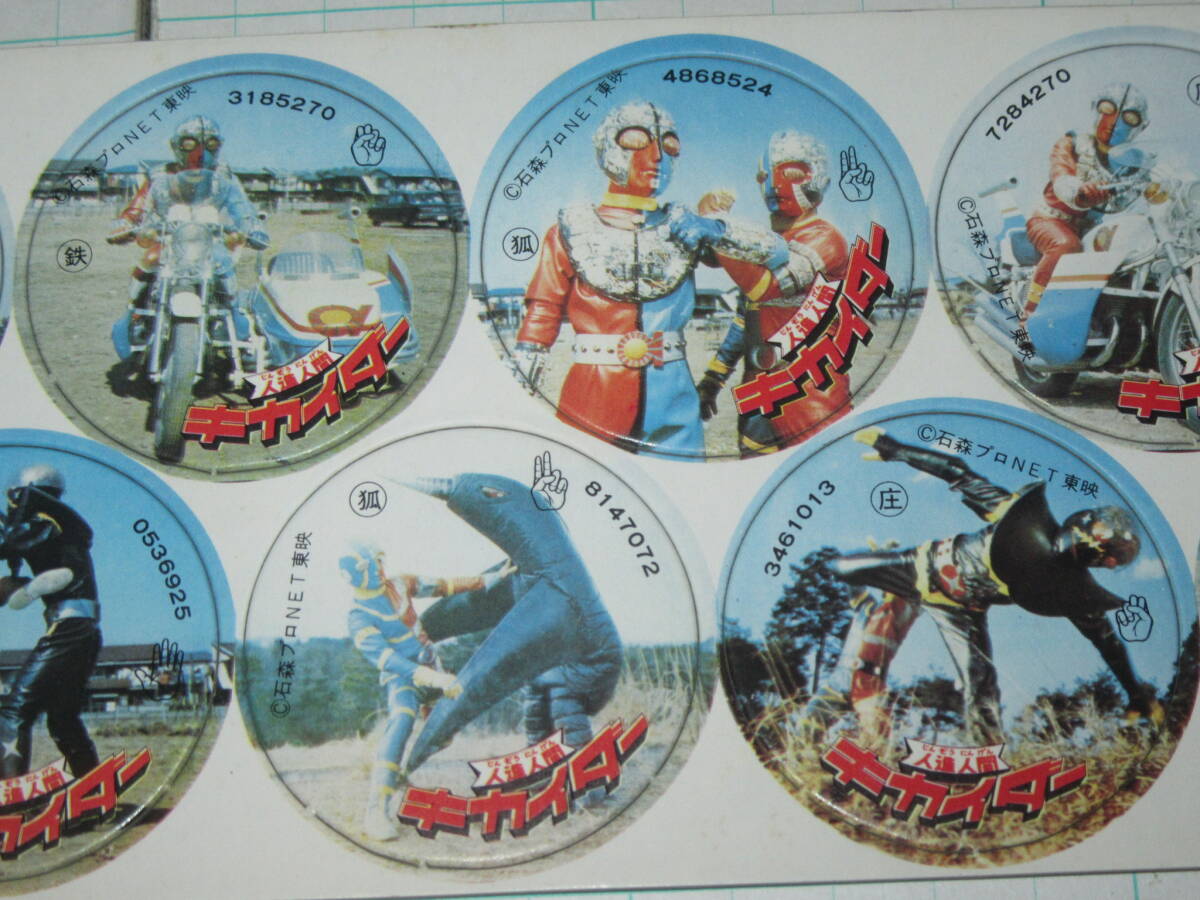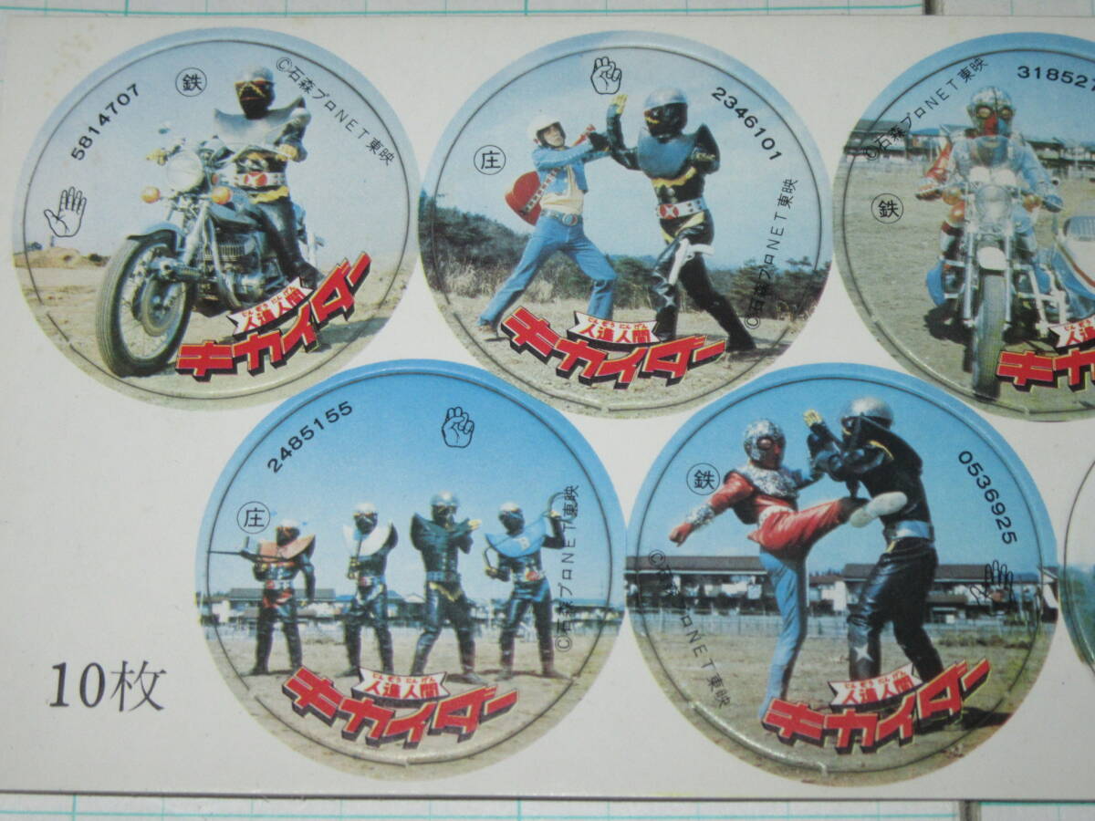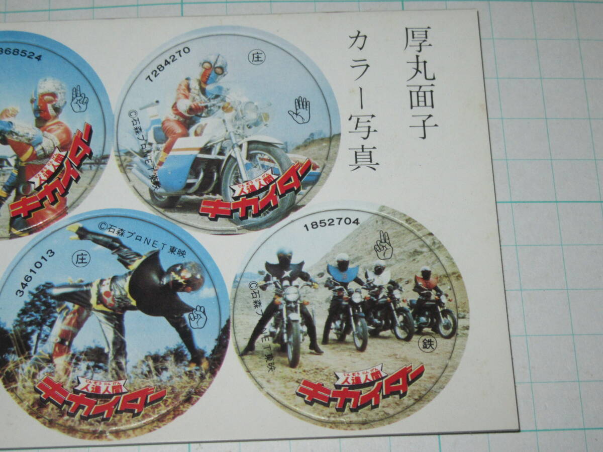丸面子 1シート(10枚) 人造人間キカイダー01 ハカイダー 駄菓子屋 放送当時 天田 カラー写真厚丸面子 めんこ メンコ カード ブロマイド