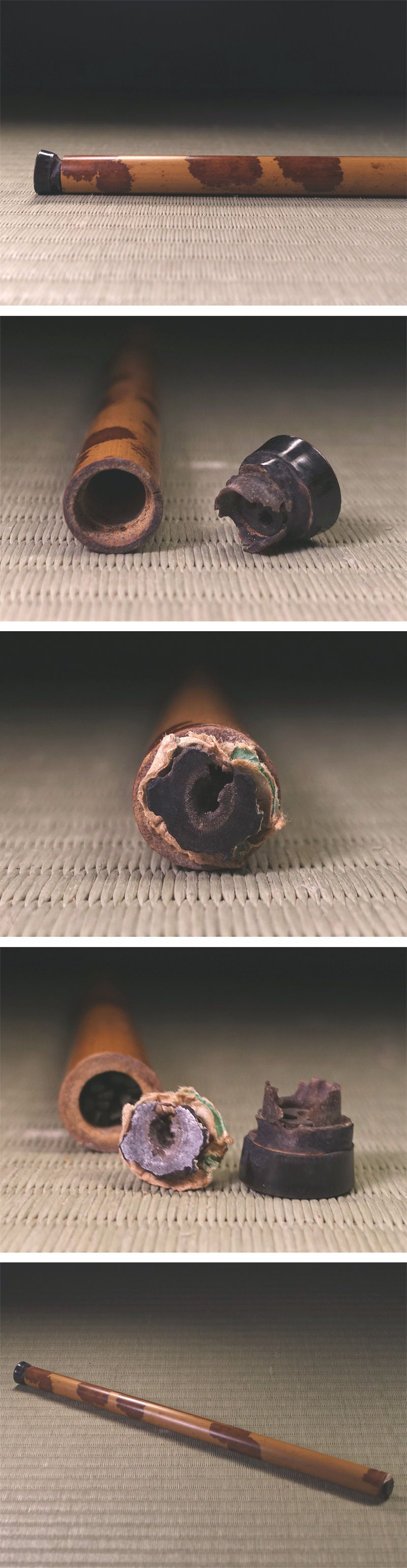なお前後に蓋があり、水牛角でしょうか?虫食いがあり、かなり緩くなっています。すぐに落ちてしまう状態ですので、その点はご了承の上でオークションにご参加下さい。