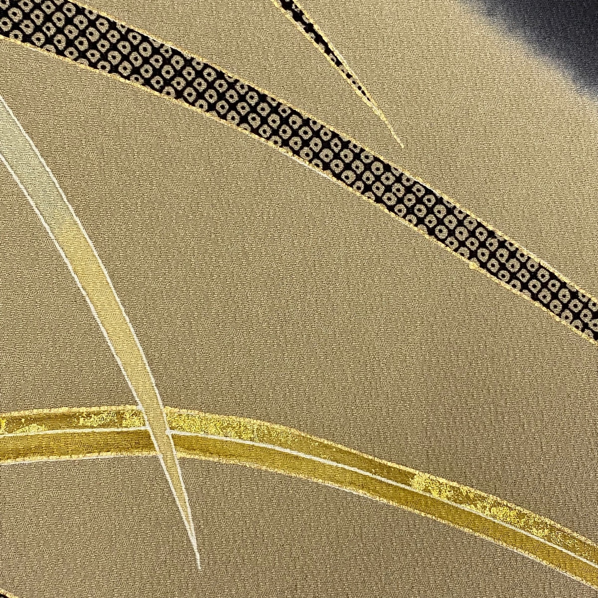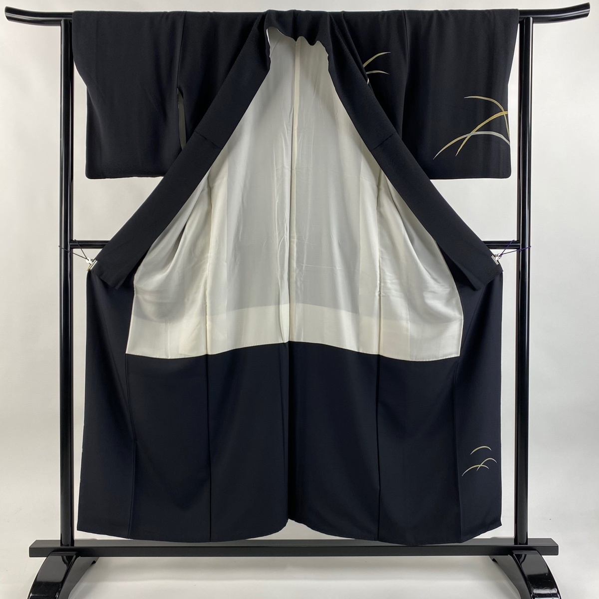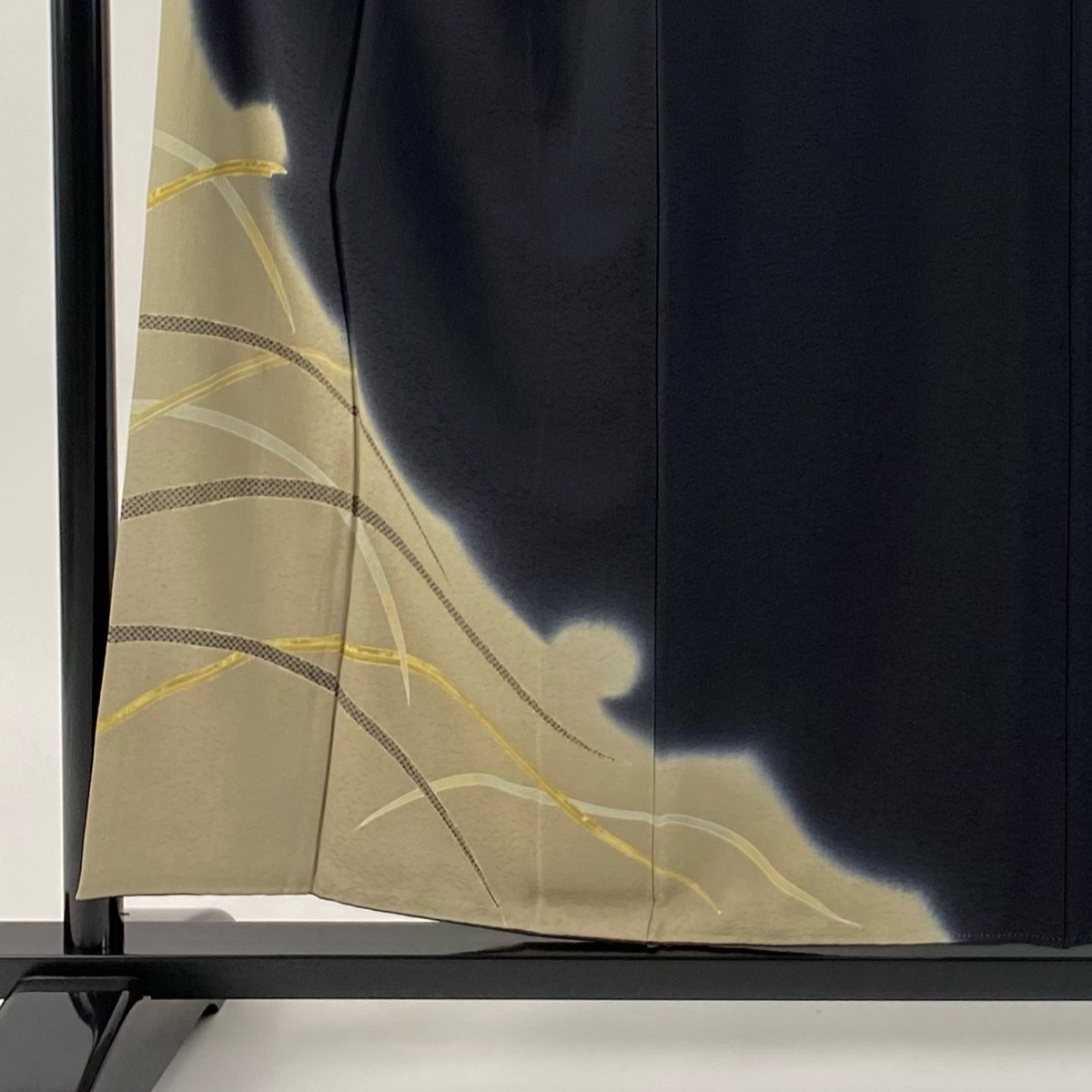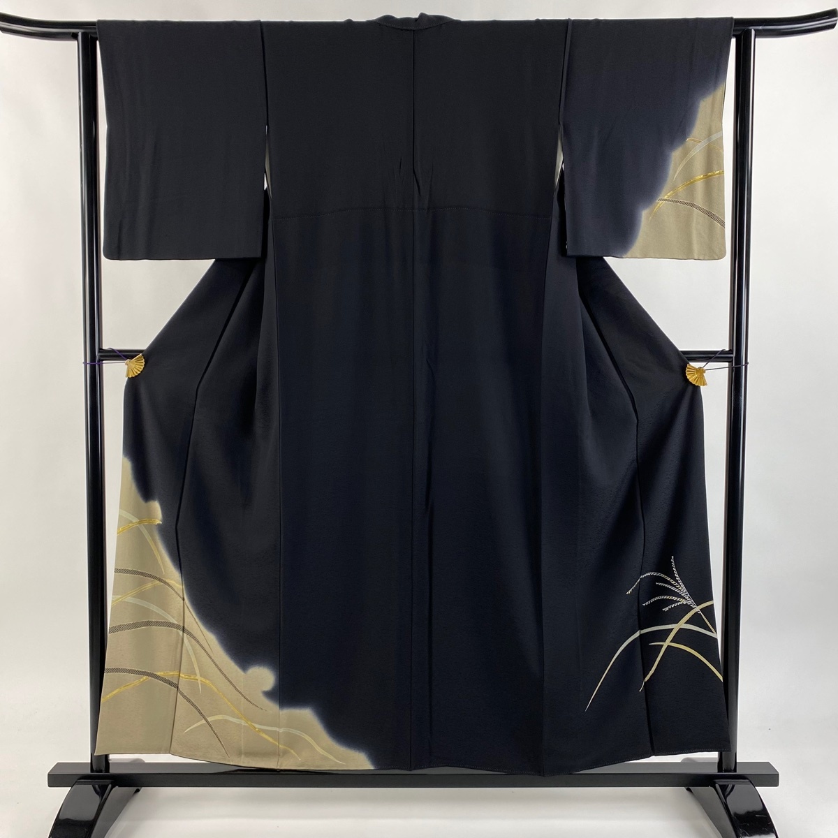 | 付下げ 秀品 芝 雪輪 金彩 染分け 黒 袷 身丈154 裄丈62 S 正絹 【中古】 |