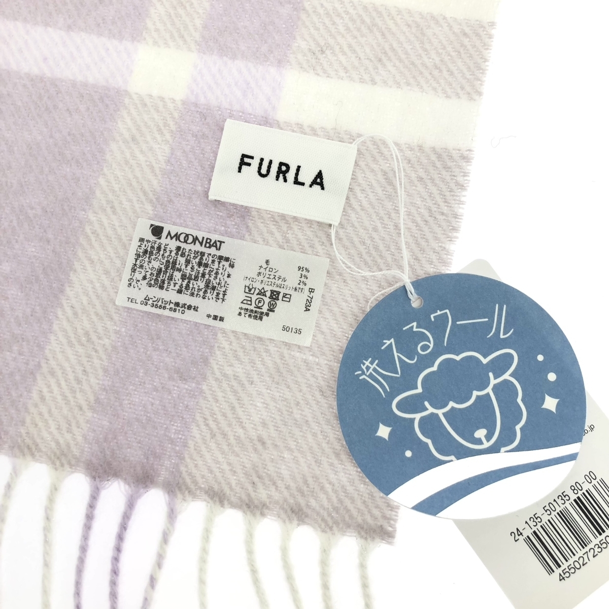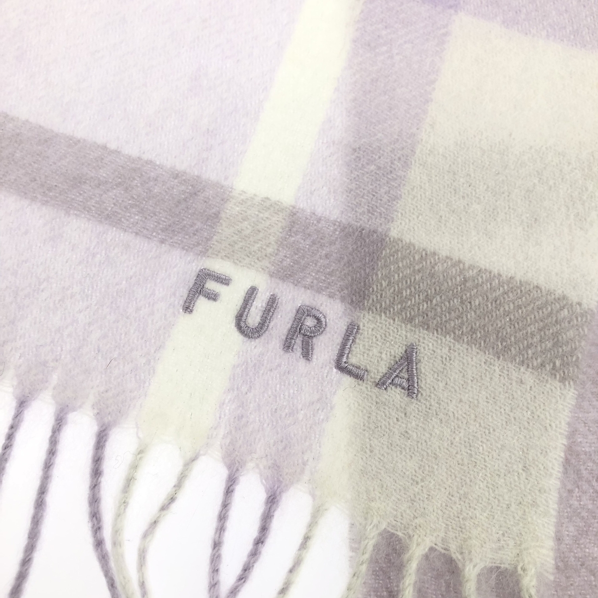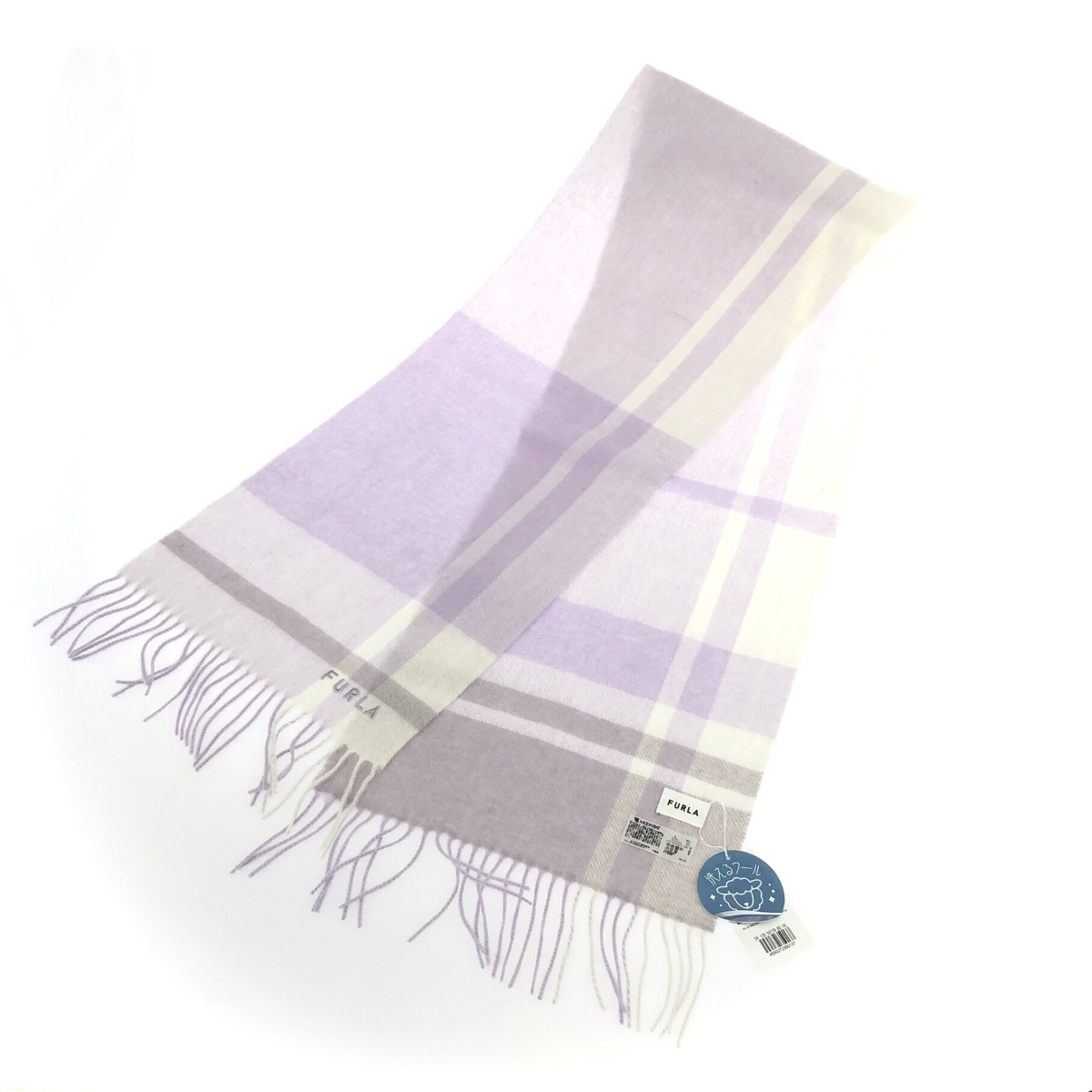 フリンジマフラー チェック柄/ロゴ刺/ウール |