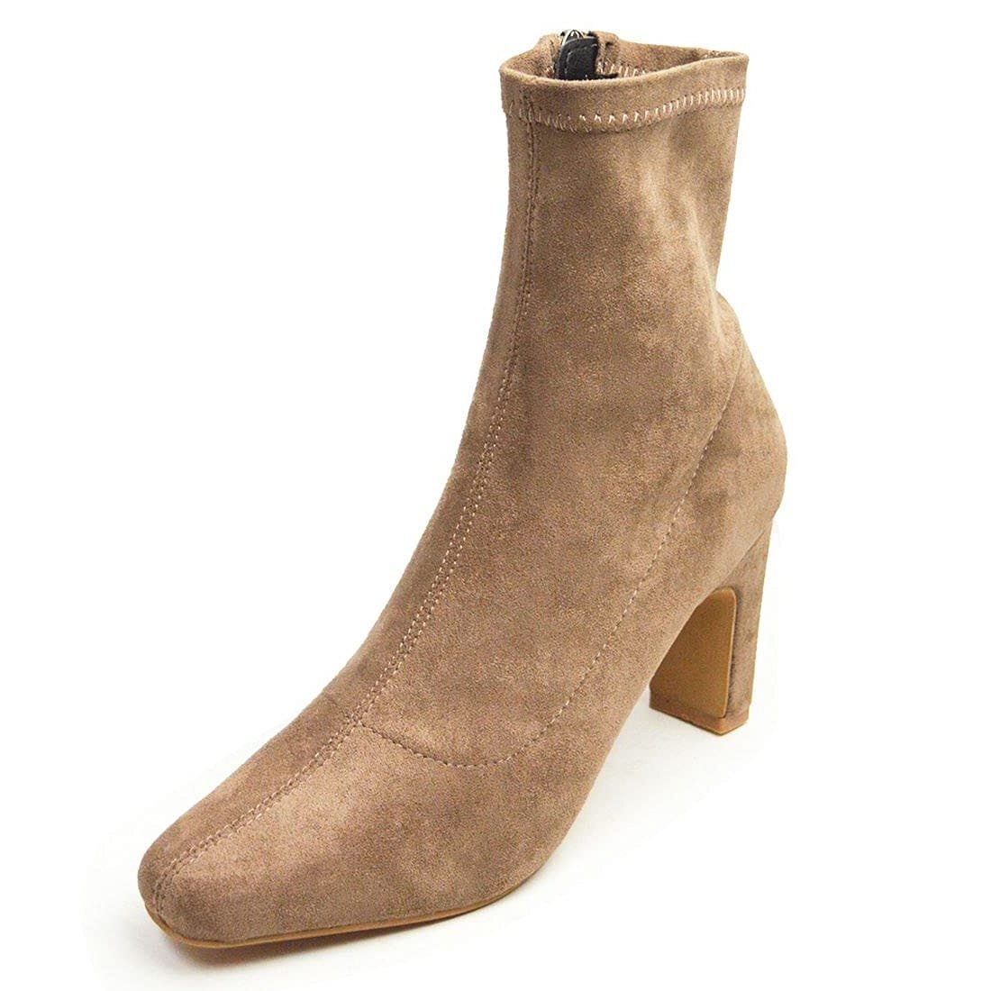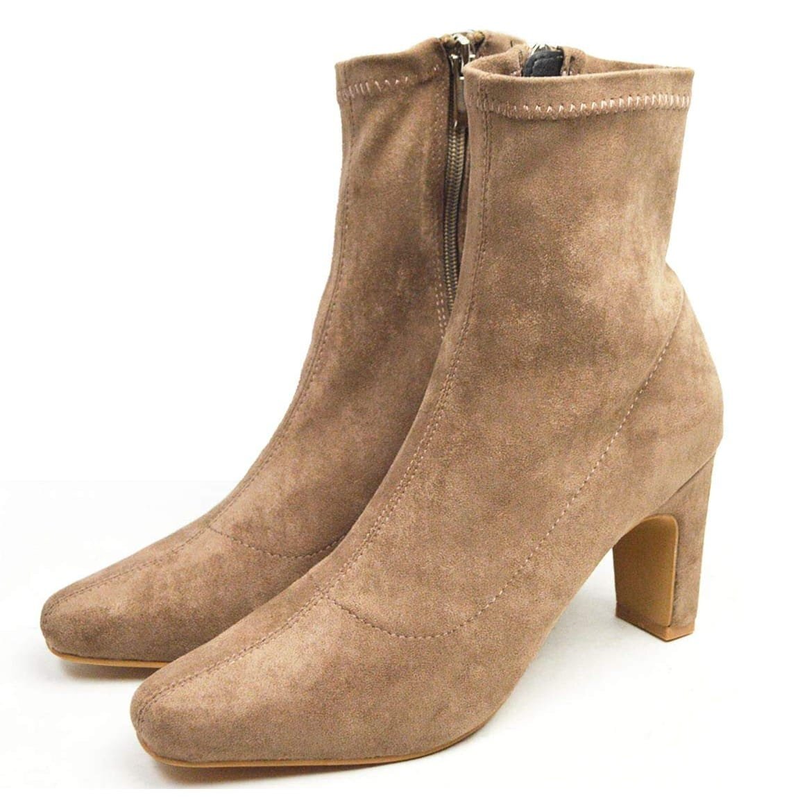 レディース ソックスブーツ 8cm 太ヒール 着脱簡単 サイドzip ショート丈 柔らかクッション ストレッチ性 美脚 ブーツ 9589