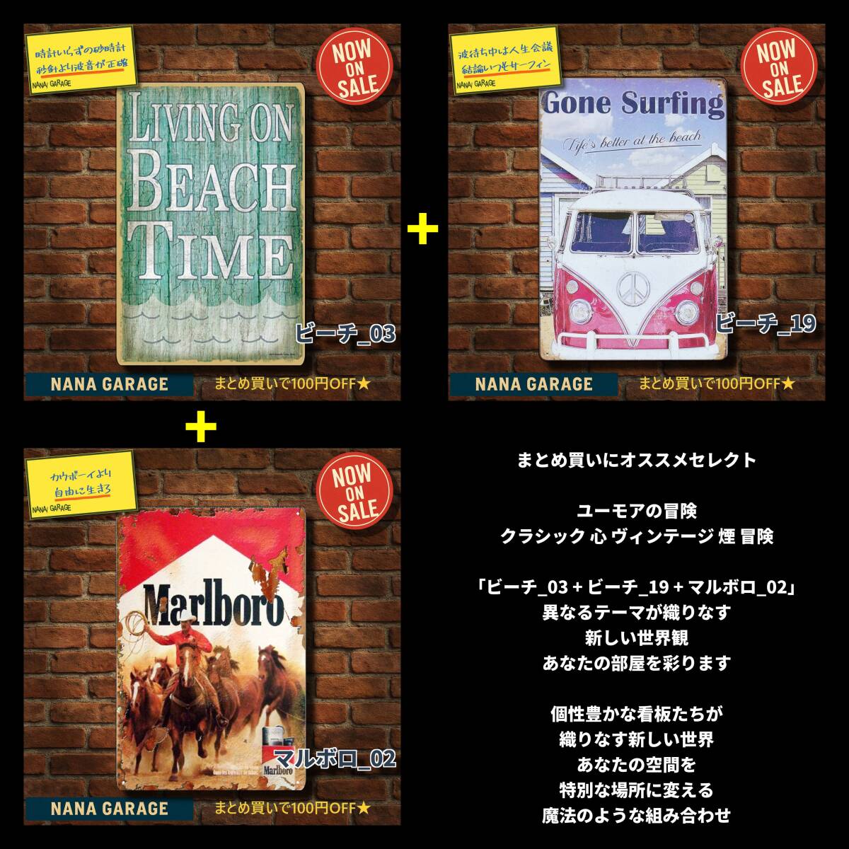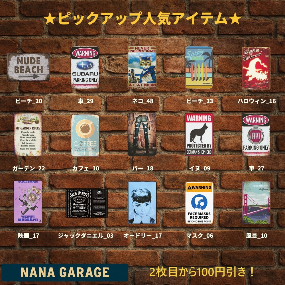 海外直輸入のヴィンテージ風ブリキ看板を中心に、