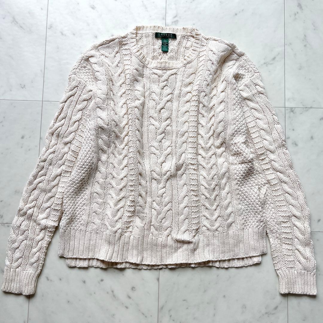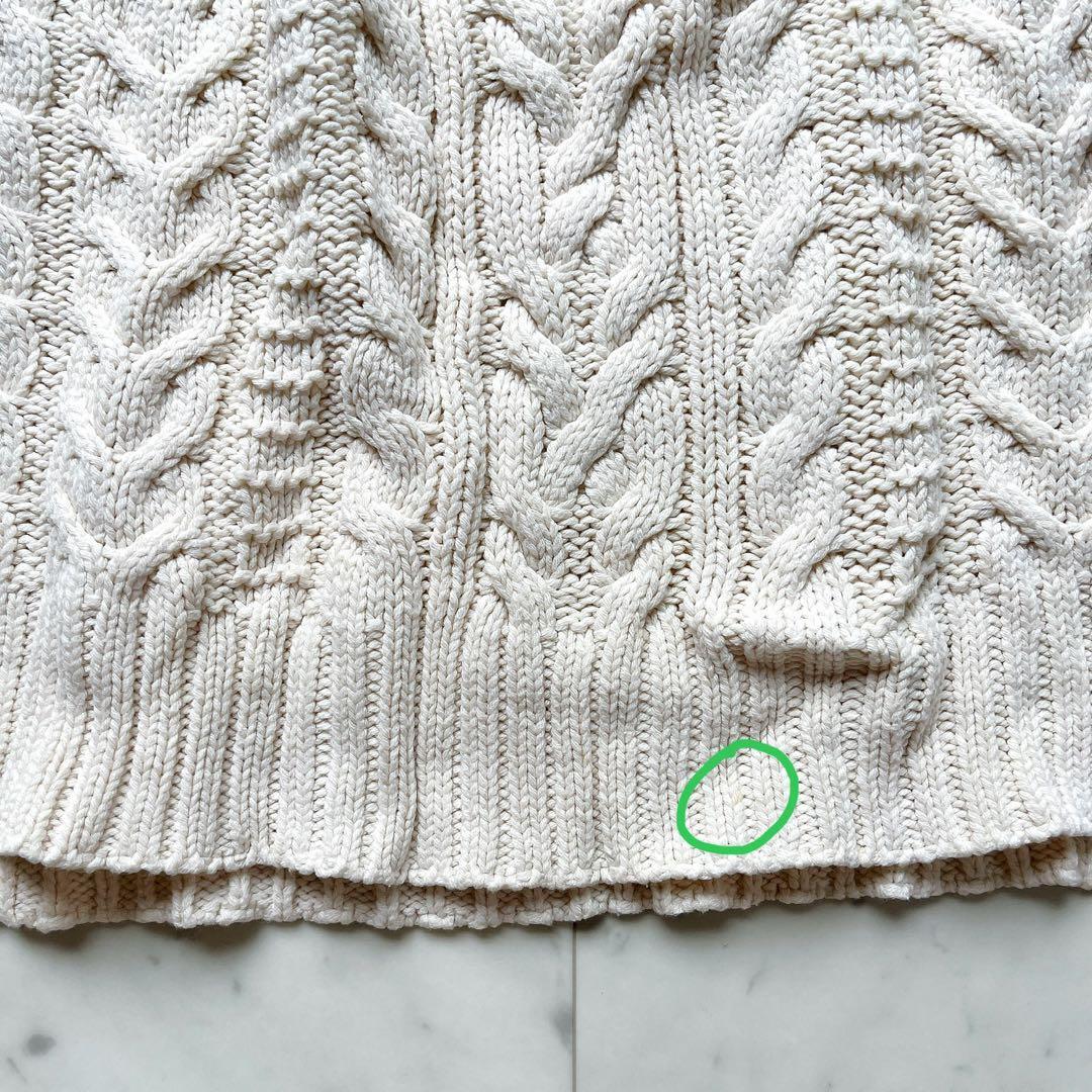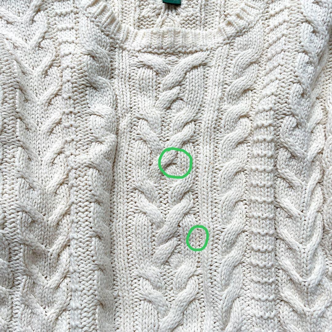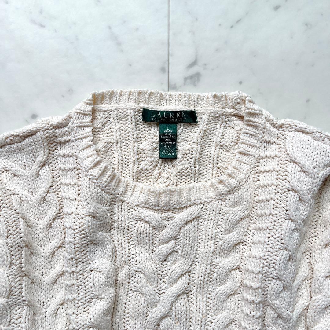定番のケーブル編みが施された、ざっくりとしたセーターです。