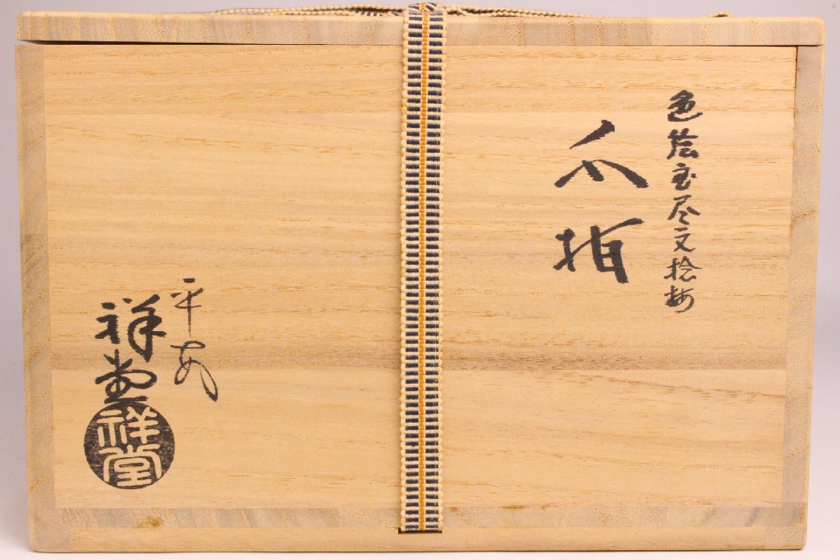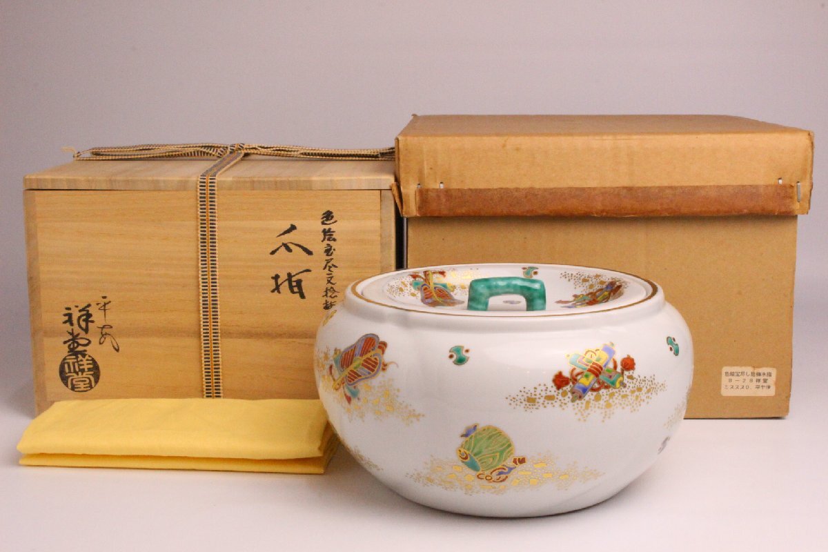 平安 手塚祥堂 作 色絵宝尽文捻梅 水指「共箱・共布・保護箱」