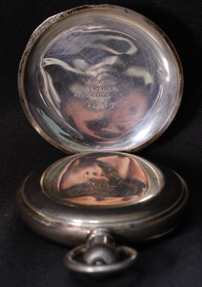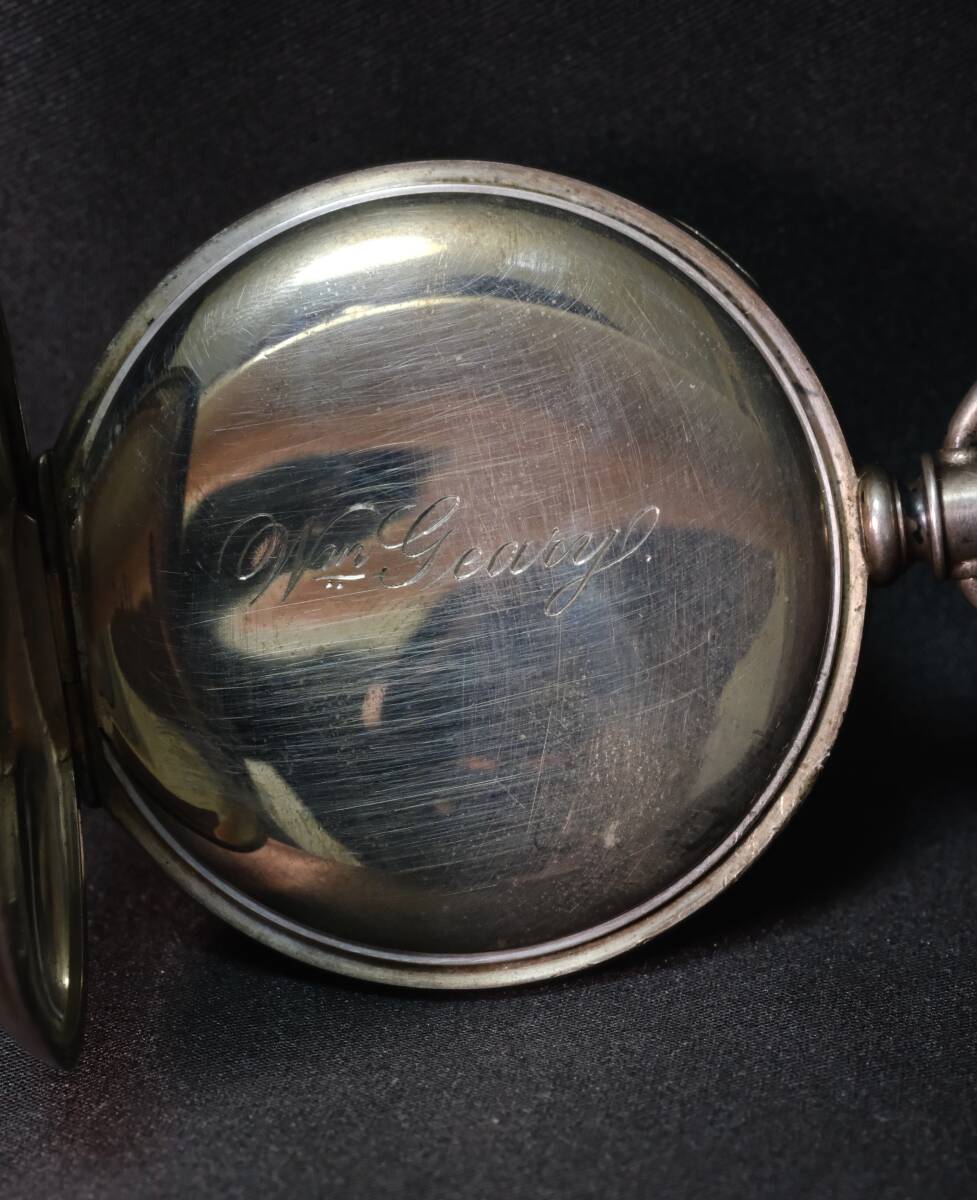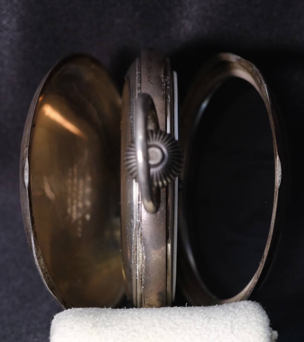 ケースはコインシルバーの推定オリジナルケースとなります。ケース自体は状態は悪くなく表面の軽い擦り減りや汚れはありますが、ちゃんと嵌っています。