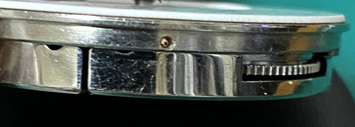竜頭は少しカタツキがありますが、私が確認した範囲ではゼンマイの巻き上げや時刻合わせの動作自体に問題はありません。表蓋と裏蓋のヒンジの具合も良好です。