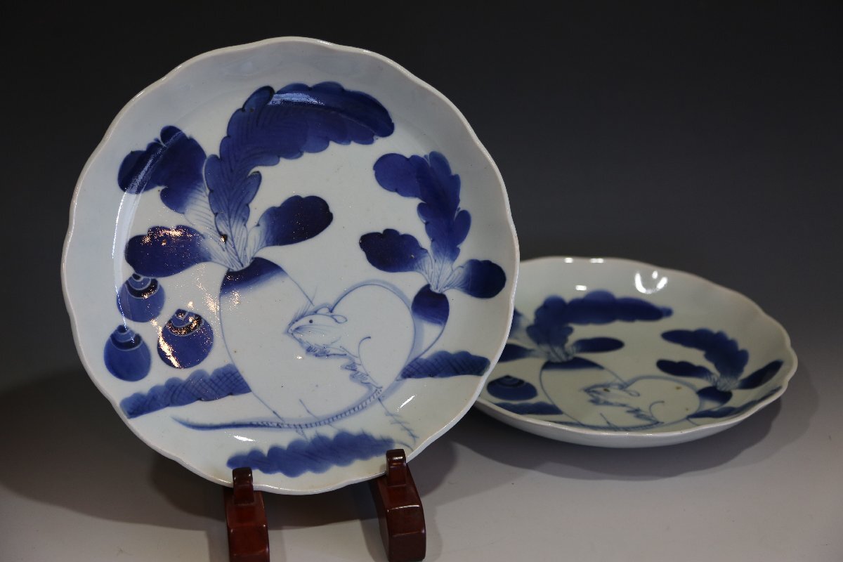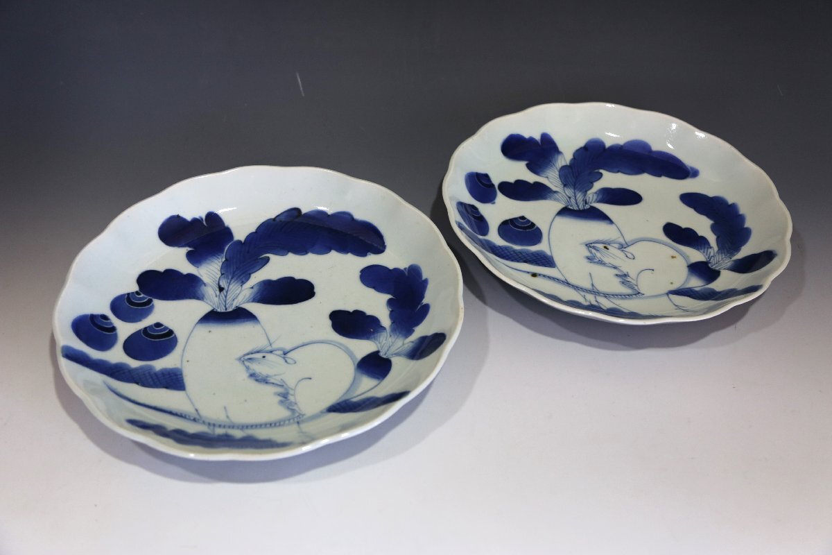 ★★★ 江戸後期 伊万里 志田窯 大根に鼠図 大黒(大根食う)に宝珠 皿 2枚 ★★★