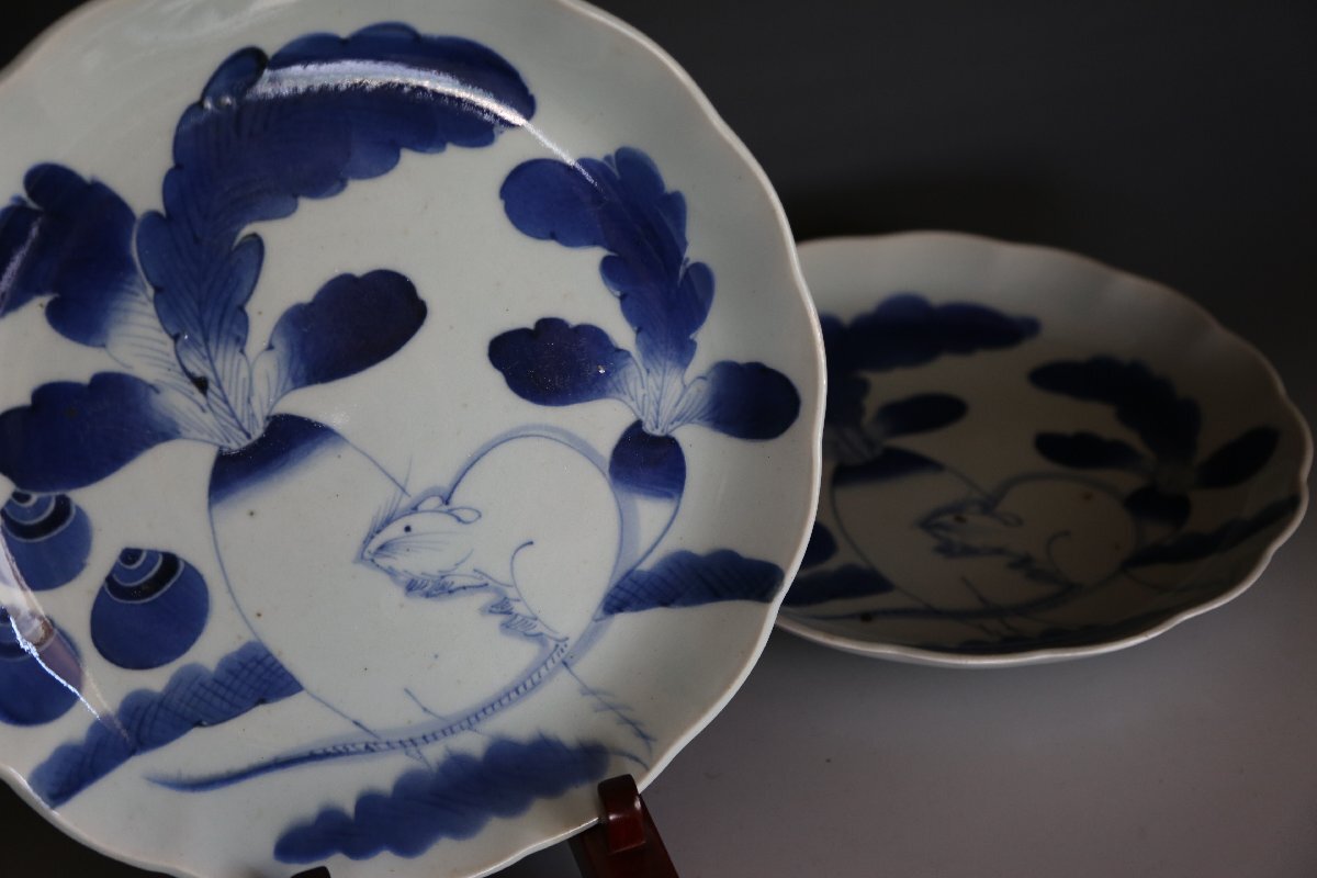 ★★★ 江戸後期 伊万里 志田窯 大根に鼠図 大黒(大根食う)に宝珠 皿 2枚 ★★★ 76