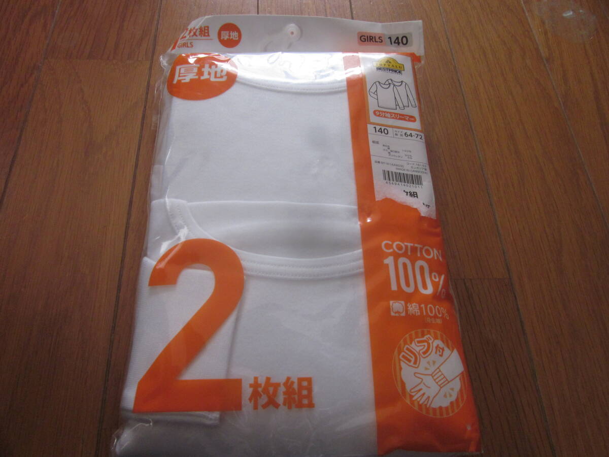 新品未使用の 女児の 9分袖のスリーマ―2枚組です。