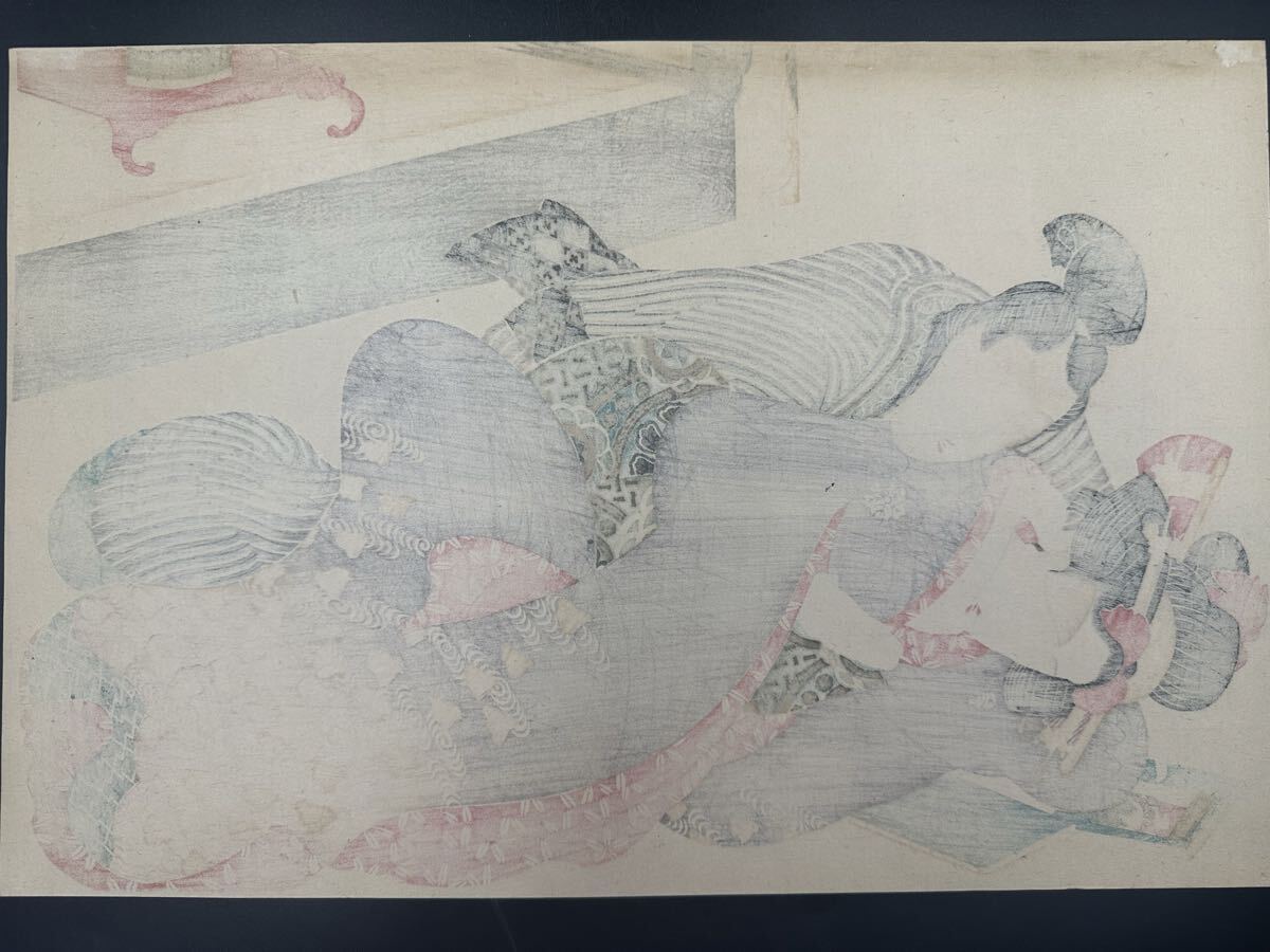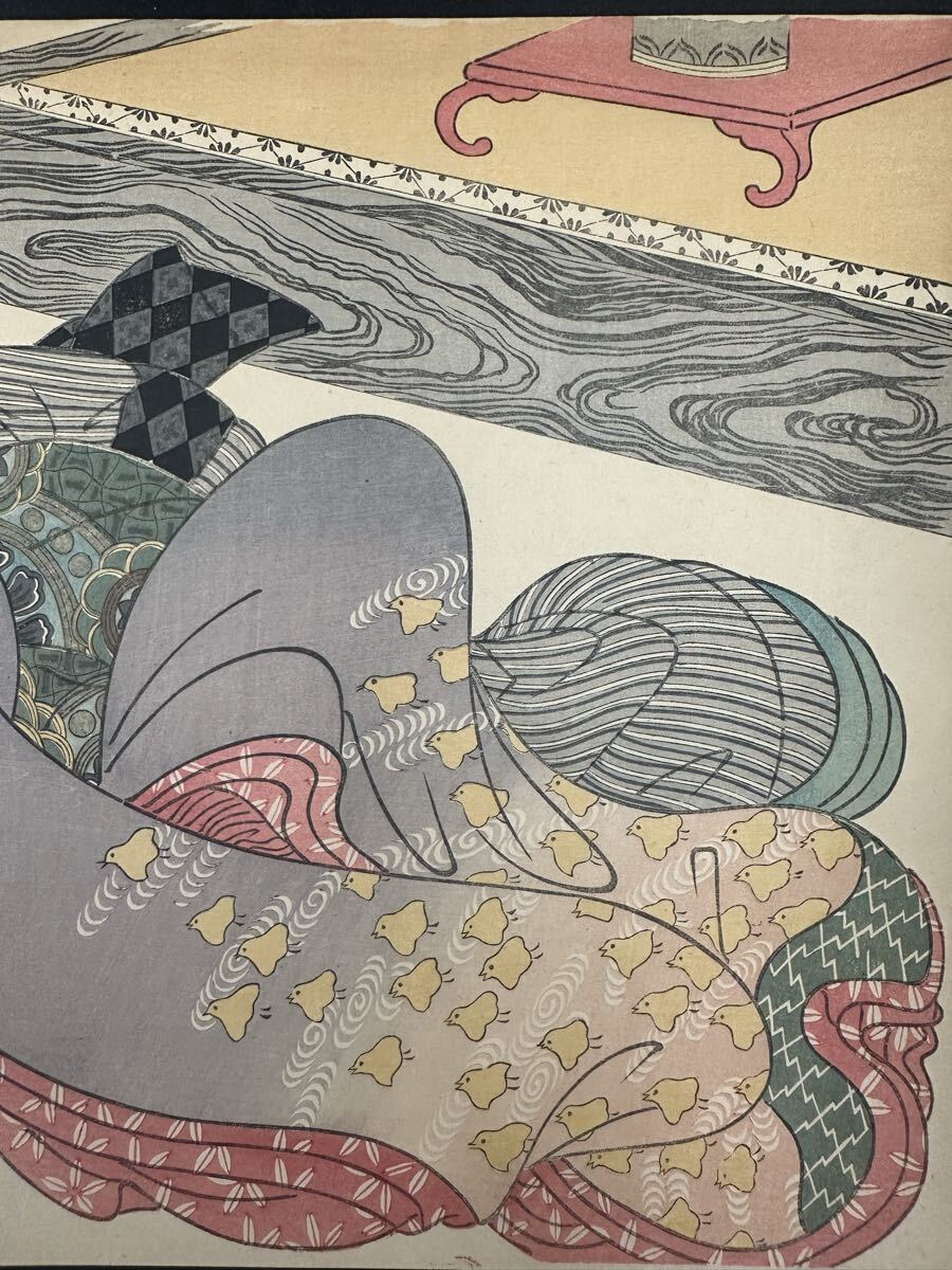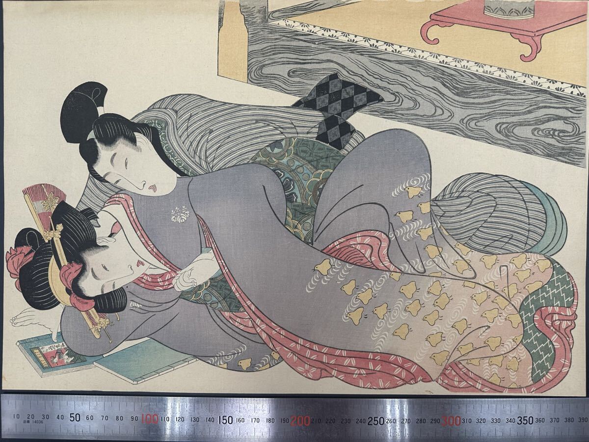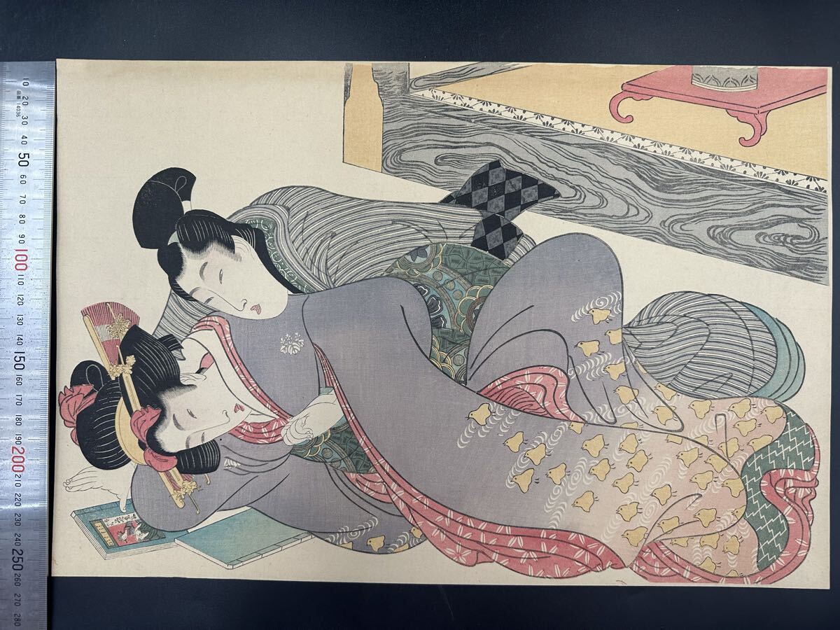 【真作】大正期 浮世絵木版画 菊川英山「出会茶屋」あぶな絵 美人画 大判 錦絵 保存良い