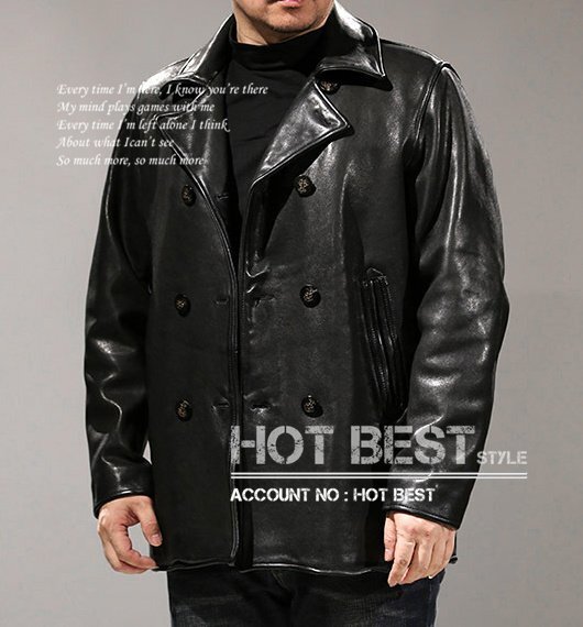 1.4mm シープスキン 定番 740 海軍ピーコート 中綿 イタリアンレザー タンニンなめし オイルレザー ラム 羊革 Y2678/S~2XLサイズ指定可