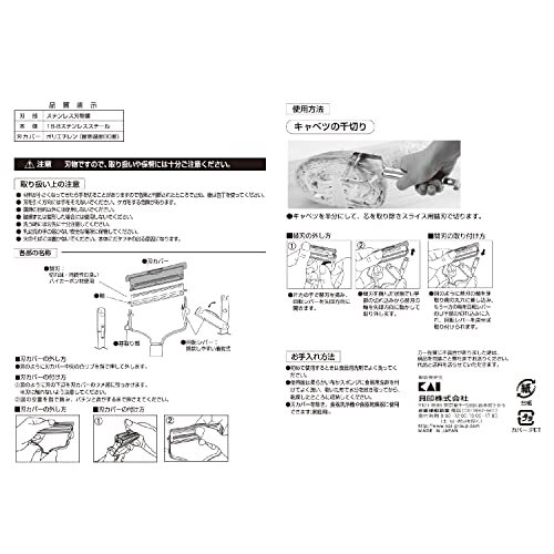 ・素材・材質:刃部/ステンレス刃物鋼、本体/18-8ステンレススチール、刃カバー/ポリエチレン (耐熱温度80度)