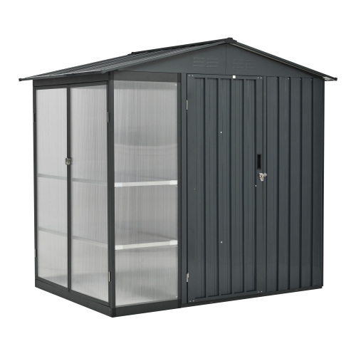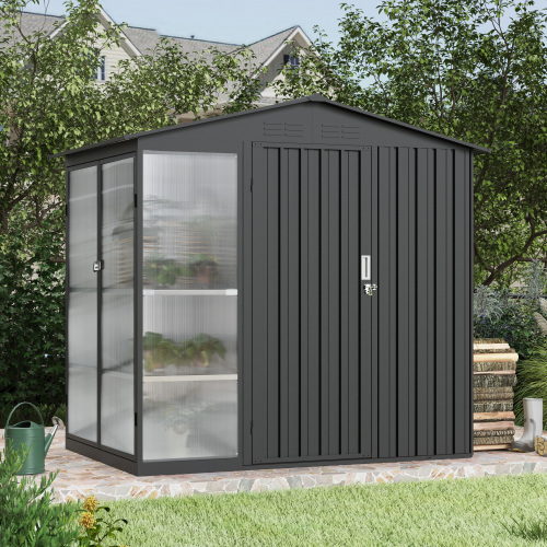 【温室付き】物置 屋外 スチール 可動棚 倉庫 戸外収納庫 W180*D121*H180cm 物置き おしゃれ 大型 収納庫 屋外物置 防さび ベランダ グレー