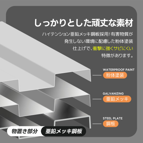 • ◎09【しっかりとした頑丈な素材】温室部分:軽くて錆びにくいアルミフレームを採用。雨や湿気にも強く、ガーデニングを安心して楽しめます。物置き部分:ハイテンション亜鉛メッキ鋼板採用。有害物質が発生しない環境に配慮した粉体塗装仕上げで、衝撃に強くサビにくい特徴があります。外部には特別な防水加工が施され、製品全体が防水・防錆効果が優れています。