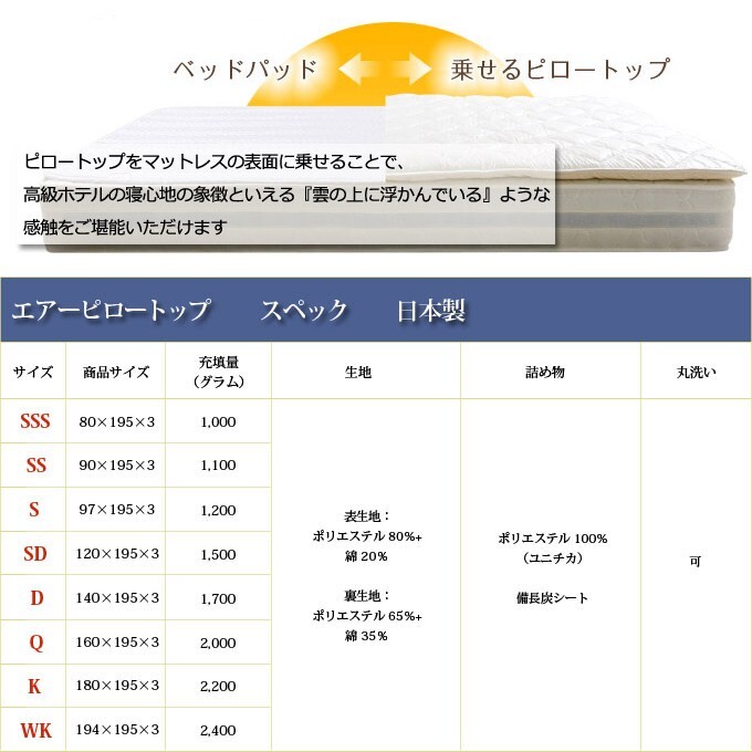 マットレス ピロートップ 高級ホテル仕様 カバー 敷き布団