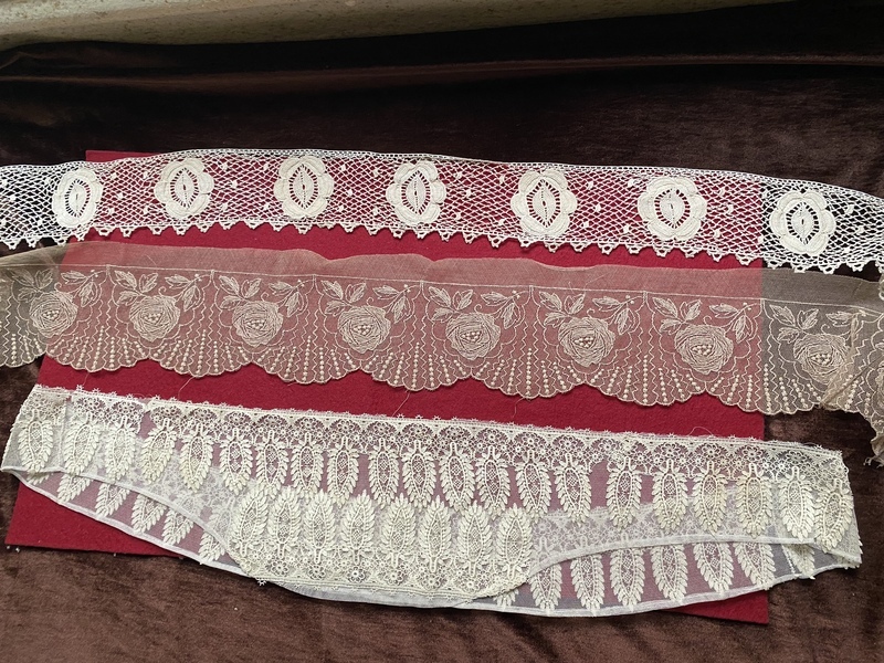 ★夫々、素敵なお花モチーフのクロシェやROSEやお花の刺繍が施されているレース合計3点セットです。写真1の1段目はお花などのモチーフが施された、アイリッシュレースで、2段目は素敵なROSEの刺繍が施されており、3段目のレースは、筒状に施されているパーツレースで、写真4、5の部分は幅が広く、そのほかの部分は写真6、7の様に施されており、とっても細かく可愛らしいお花やリーフなどのモチーフが施されており、とっても素敵です。夫々フランスらしくとっても可愛らしく素敵です♪