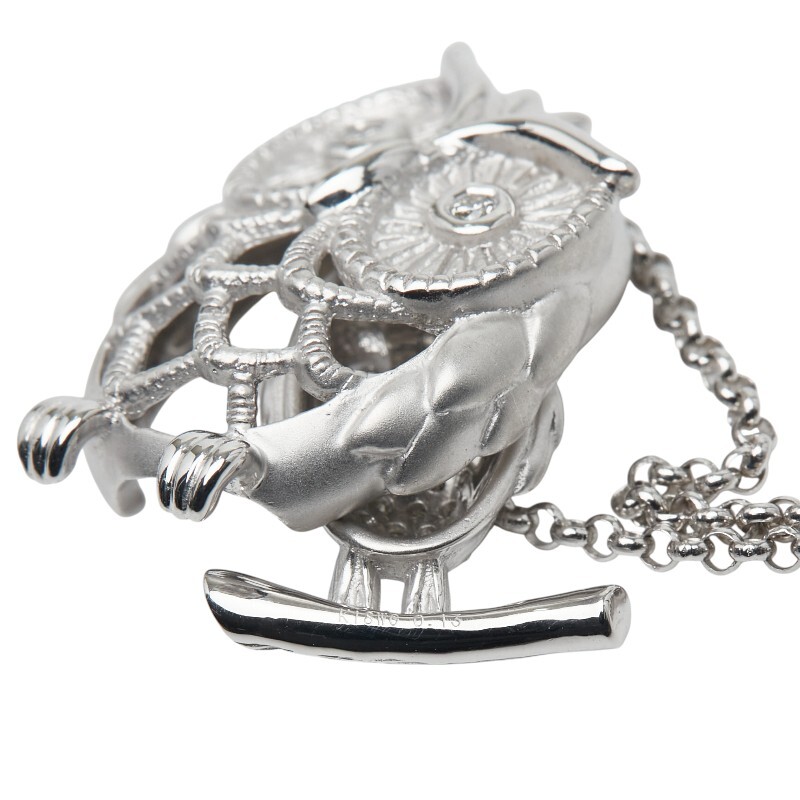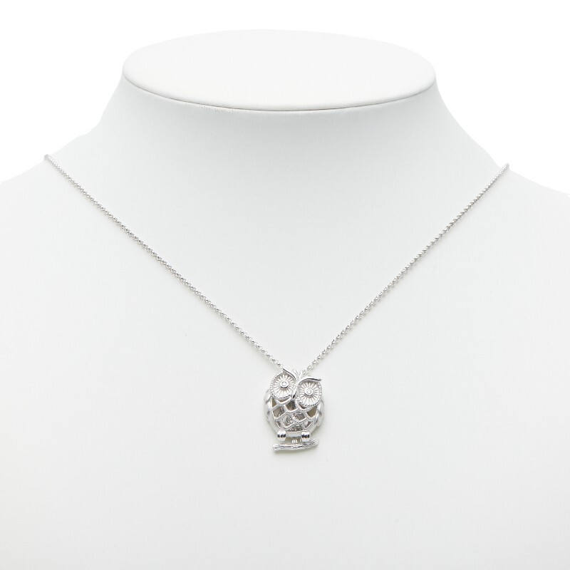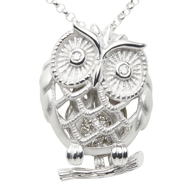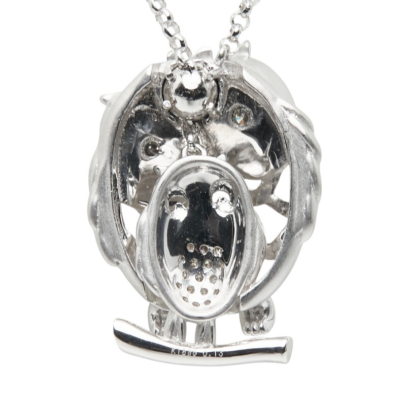 K18WG ホワイトゴールド ダイヤ0.13ct フクロウ モチーフ ネックレス レディース 中古