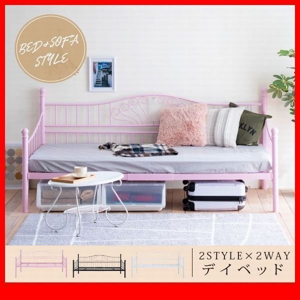 | 昼はソファ、夜はベッドと、2つのスタイルで使えるアンティーク調のデイベッド。 ロートアイアンの装飾がエレガントな空間を演出し、アンティーク調の家具や小物との相性もバッチリです。 |
