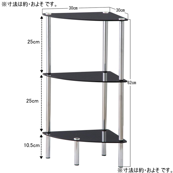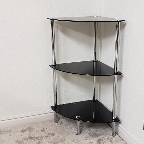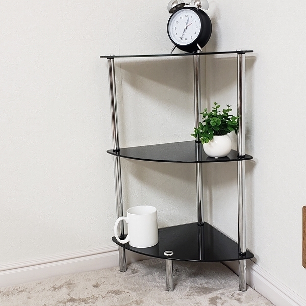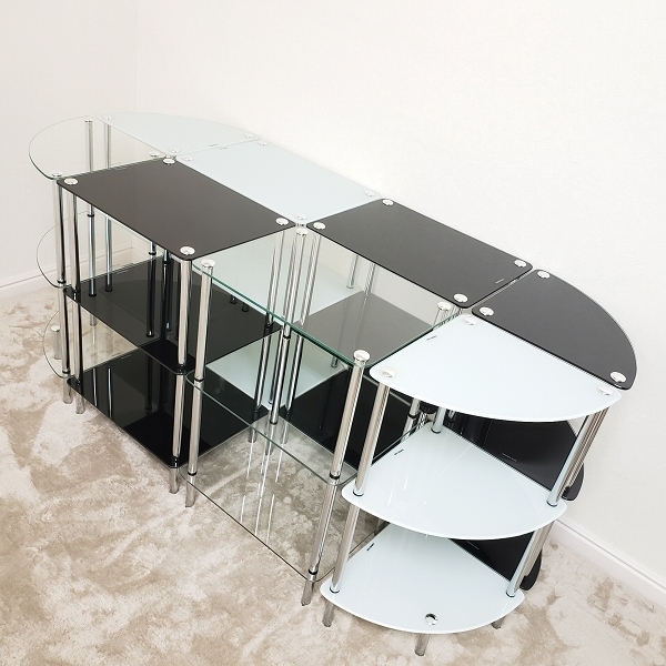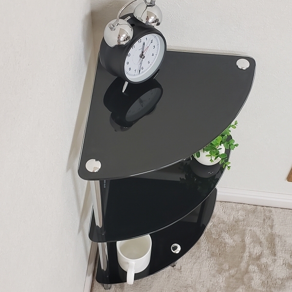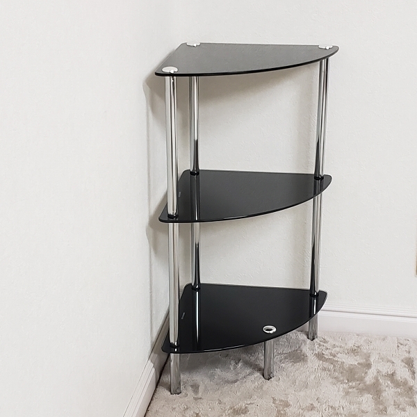 ガラスラック コーナータイプ ブラック色(黒色) 送料無料(北海道・沖縄・離島へは発送不可) お客様による組立が必要です。SMJ-102BK