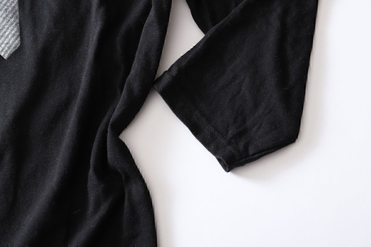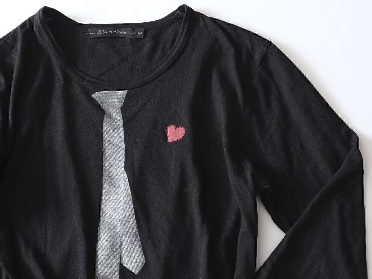 即決★古着★ MetalSystem メタルシステム ★クルーネック7分丈ネクタイプリントTシャツ★M【64231-001-04】ブラック黒【店頭完売】美品