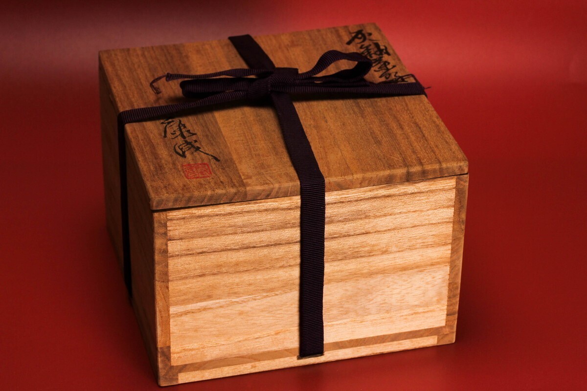 稀に他の作品名・作家名が書き付けられた木箱をお付けしております。誤認防止のため箱書き部分の画像を掲載しない場合もございます。