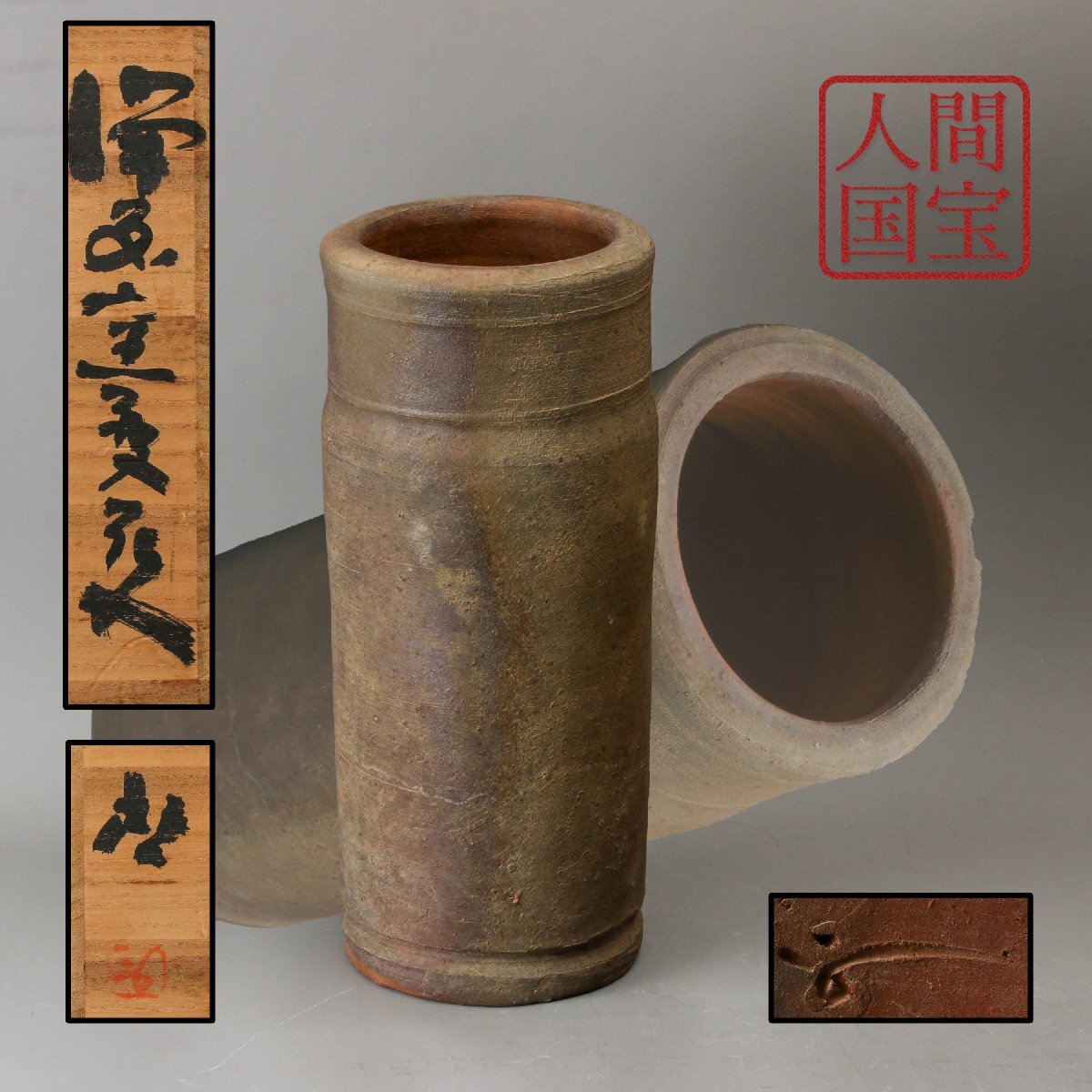 【SAG】人間国宝 藤原啓 備前窯変花入 共箱 本物保証