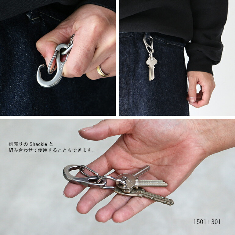 カラビナは2サイズ展開で、こちらの小さめの『Carabiner 1501』はさり気なく使えるコンパクトなサイズ感。