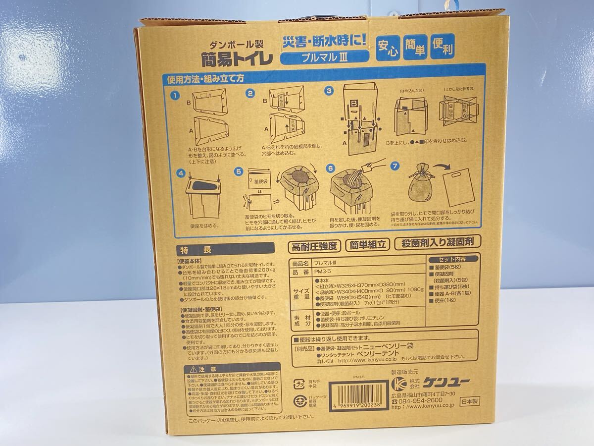 ★未使用品 災害断水時に! 日本製 ダンボール製 簡易トイレ プルマルⅢ 防臭袋プラス 非常用トイレ 防災グッズ ケンユー 管理KA687