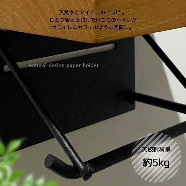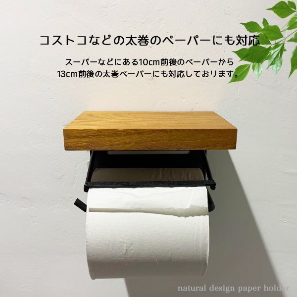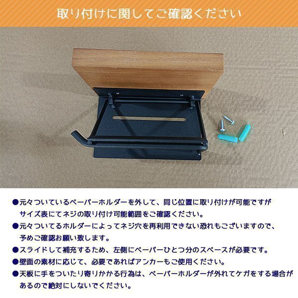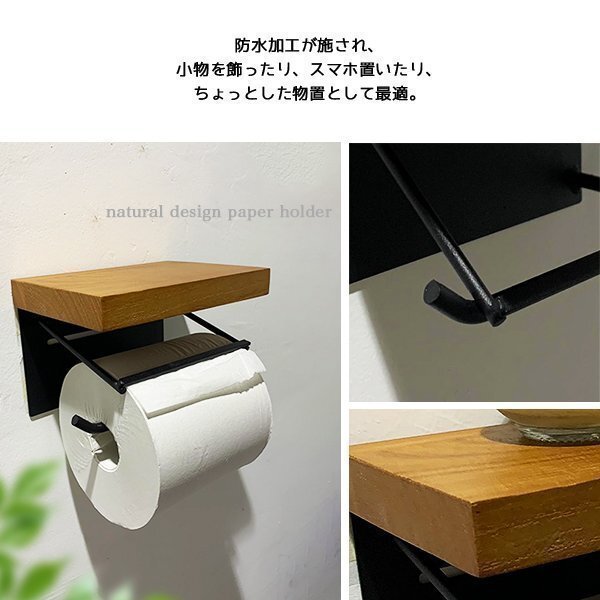 トイレットペーパーホルダー シングル 木製 ペーパーホルダー 太巻き対応 棚付き アイアン 天然木 アンティーク ヴィンテージ