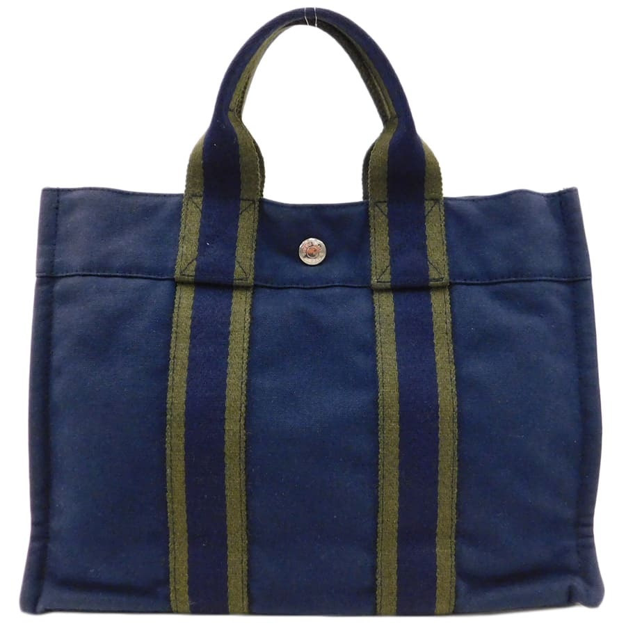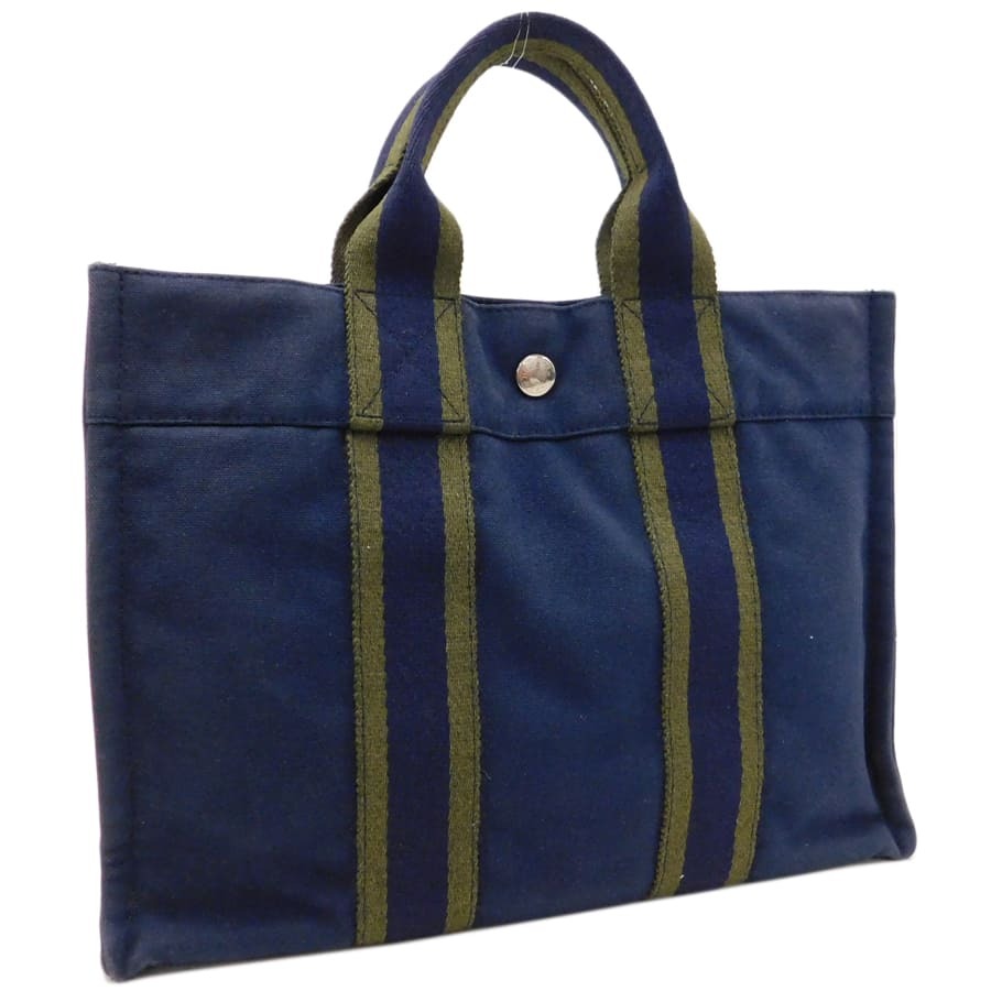 1円■エルメス/ハンドバッグ/ネイビー×グリーン系/キャンバス/フールトゥPM/HERMES ■E.Csso.Tyb-30[中古]