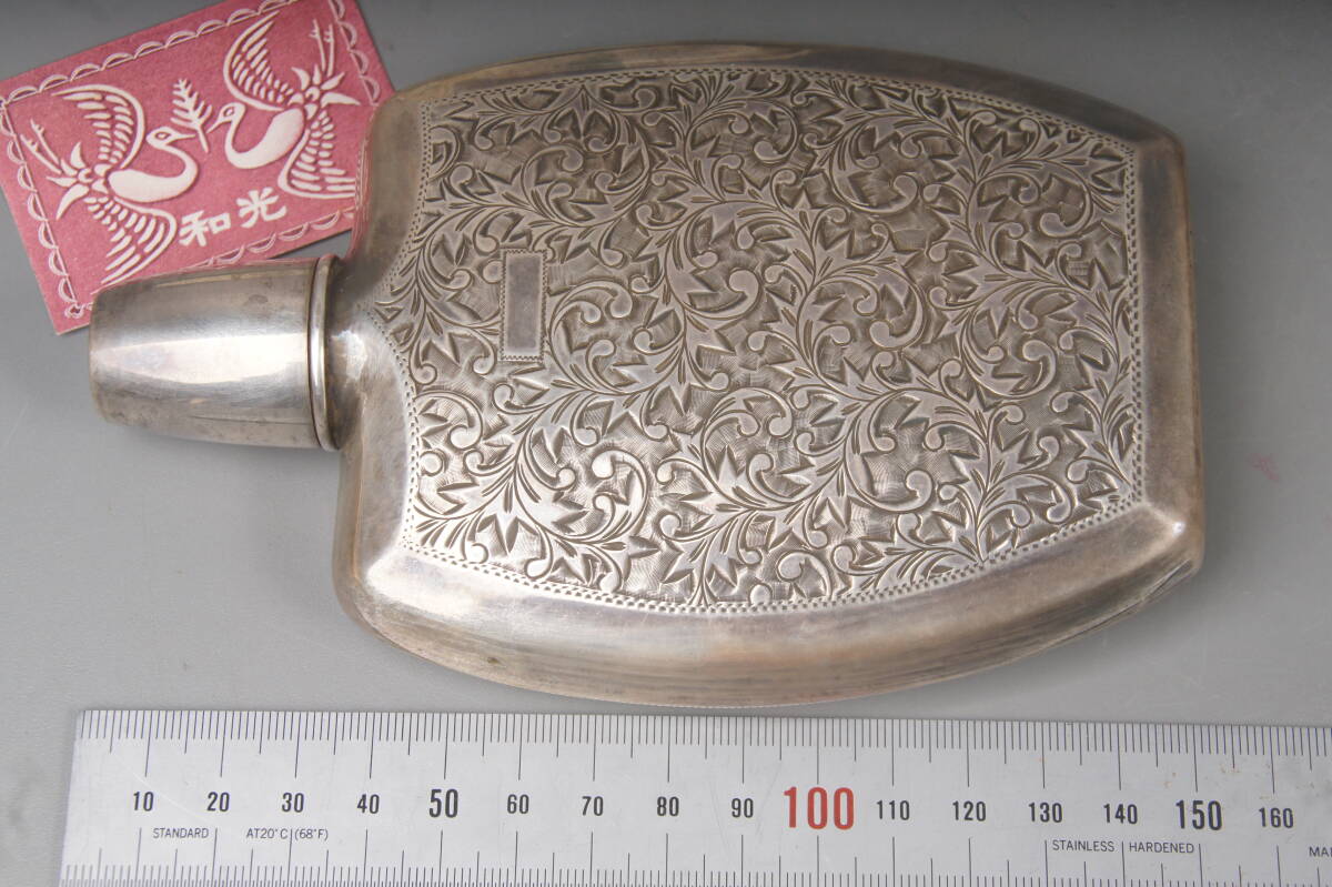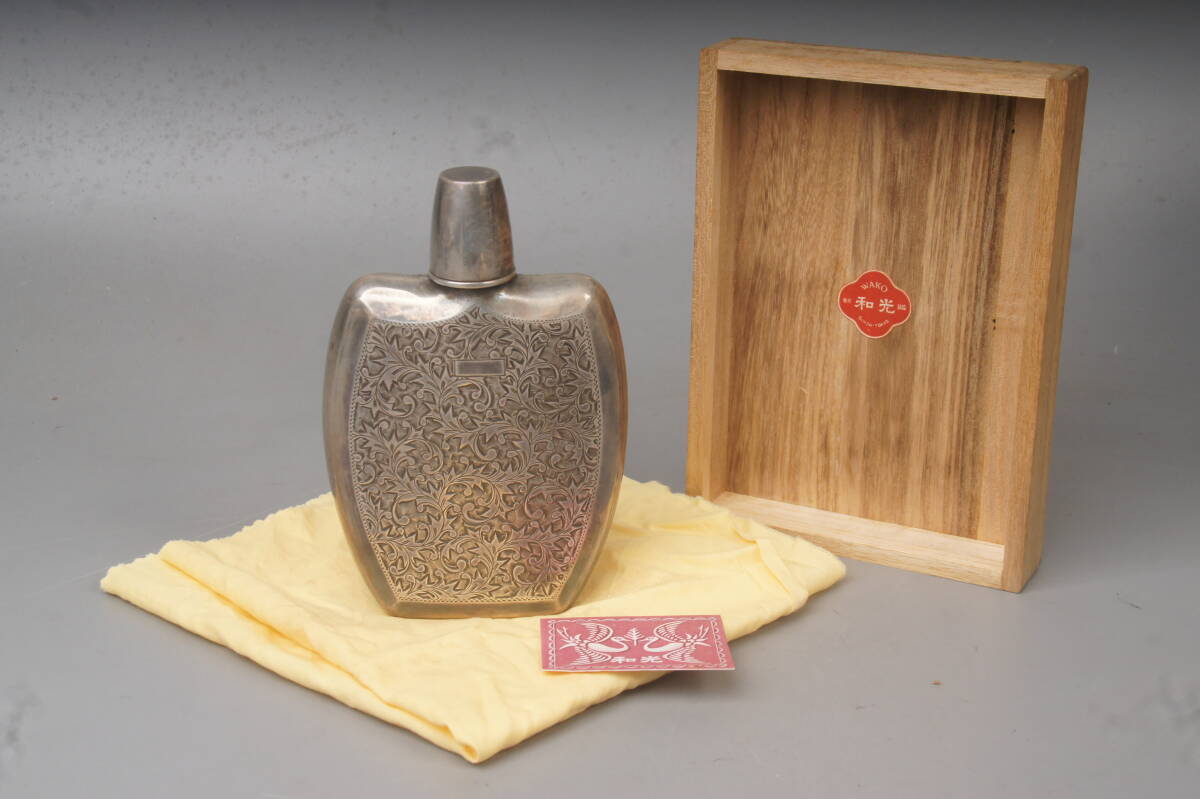 銀座和光 銀製スキットル 168g 未使用桐箱入り保管品 SILVER刻印あり 酒器 銀製品