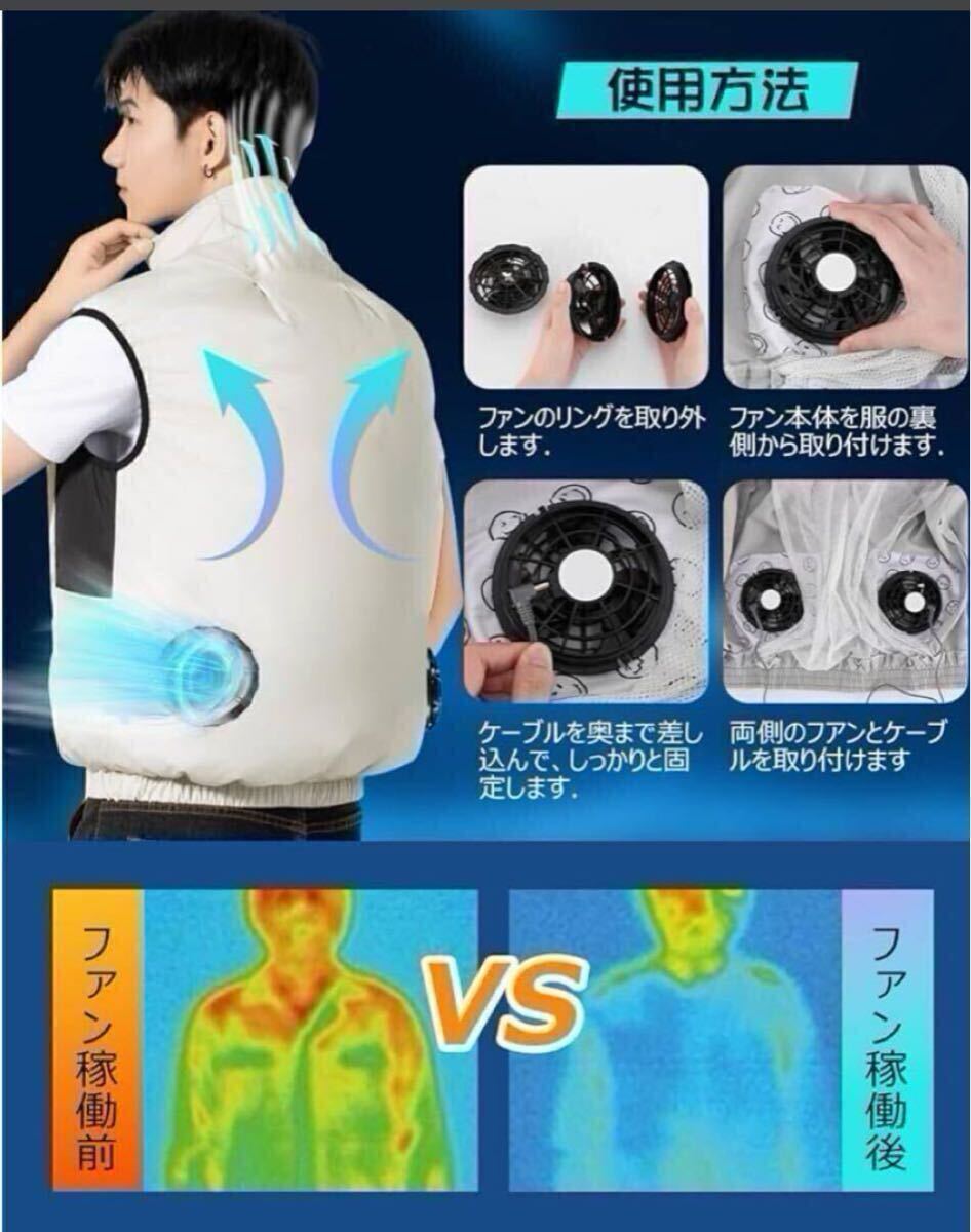2025年最新の熱中症対策、45V 超高出力ファンバッテリーセットが登場!従来のファン付きの作業服に取り付けて使用が可能です。ファンバッテリーセットのスイッチボタンを押すと、大量の新鮮な空気が服の中を迅速に循環し、服内の汗を素早く乾燥し、蒸し暑い空気を排出し、心地よい感覚を生み出して、圧倒的な涼しさを実現します。お手持ちのファン付き作業服に取付可能で、レベルアップが可能です。このバッテリーは、日本のPSE認証を取得しており、長期間安心して使用できます。