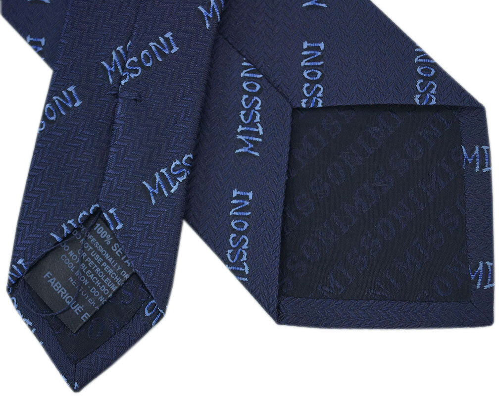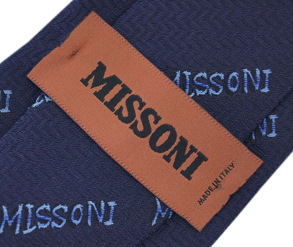未使用 ミッソーニ ブランド ネクタイ MISSONI メンズ ジャガード デザイン ヘリンボーン ロゴ シルク 100% ネイビー ブルー