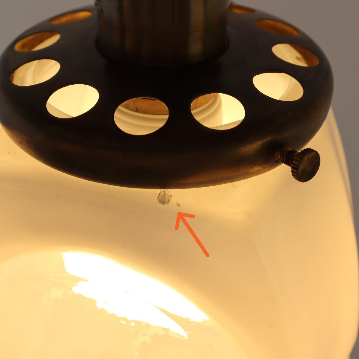 | コンディション condition | ソケット、コード、シーリングは交換しています。 小キズ、カッティングシート文字の気泡、取れない汚れなど、経年による劣化があります。 詳細は画像をご覧ください。 ※当店は、アンティーク照明器具等を販売するにあたって、電気用品安全法第8条第1項(技術基準適合)を免除する例外承認制度により、経済産業省から承認を受けた事業者です。 技術基準適合に規定する検査と同様の検査を実施しておりますが、PSEマークや電気用品取締法に基づく表示が付されていない電気用品であり、十分な取扱注意が必要です。 ご理解いただいた上で、ご購入いただきますようお願い申し上げます。 |