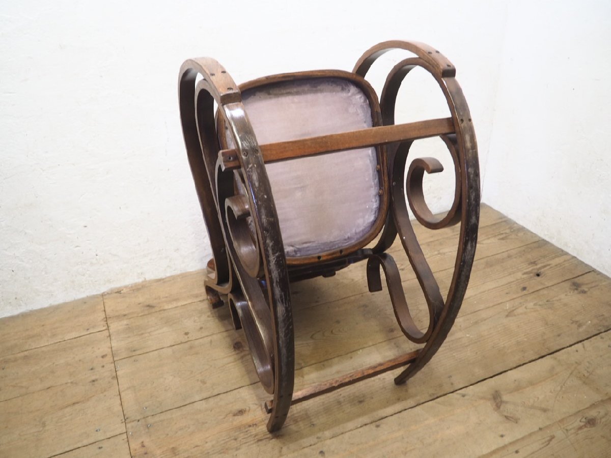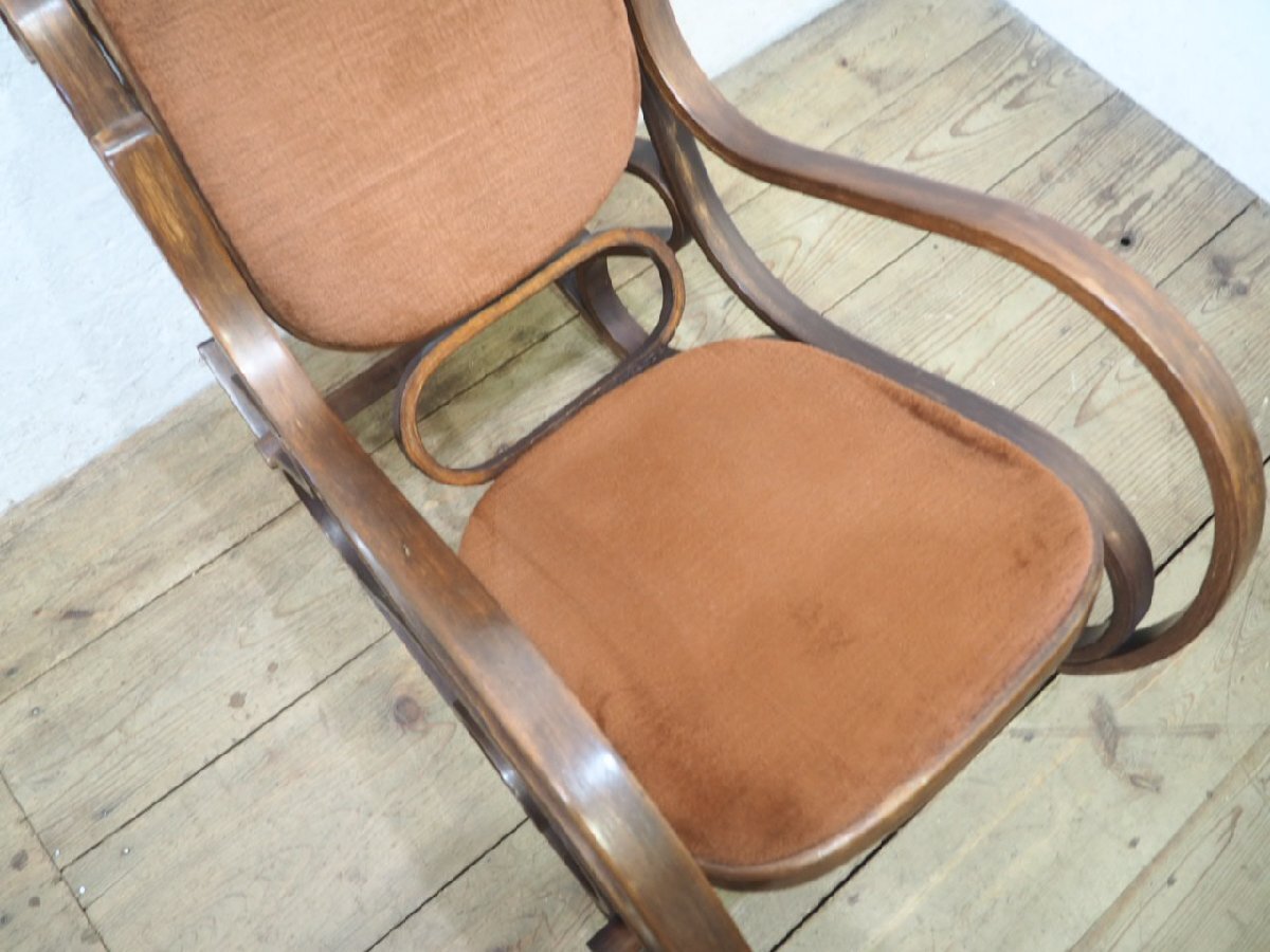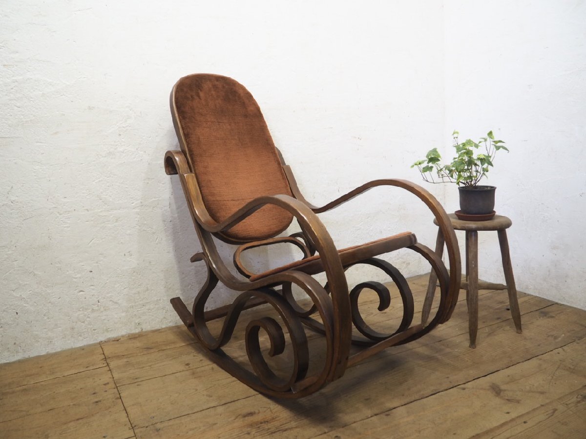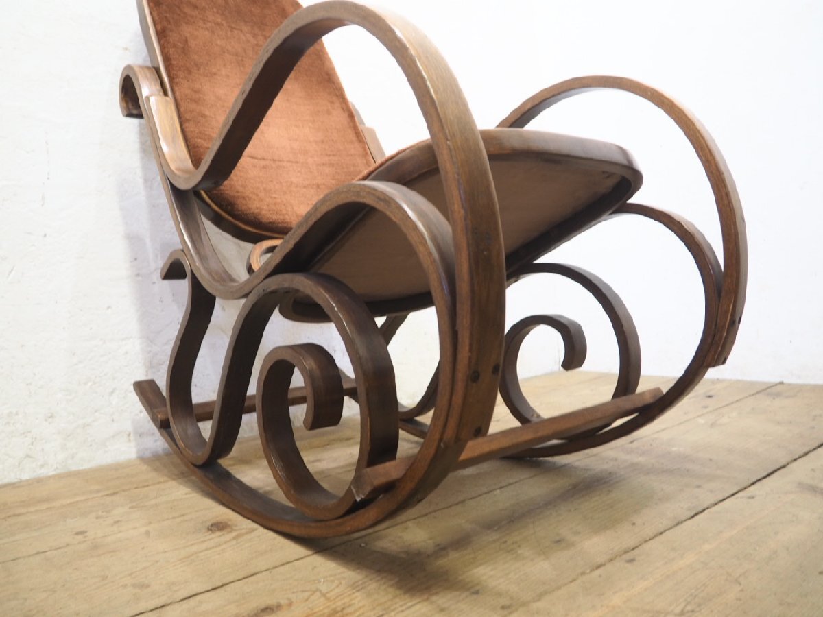 タ荷N0579◆レトロモダンな曲木の古い木製ロッキングチェア◆椅子 イス カフェ インテリア リビング アトリエ ヴィンテージP(ヤD)笹4