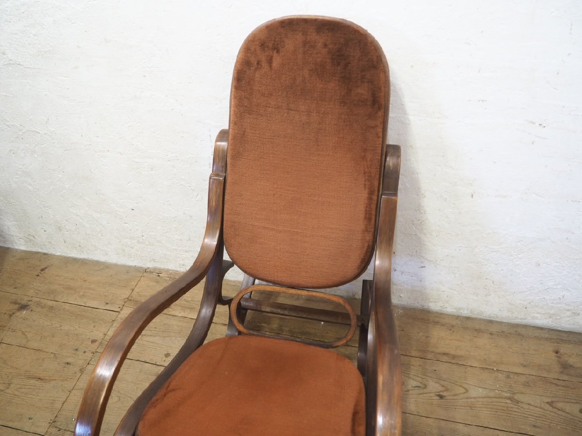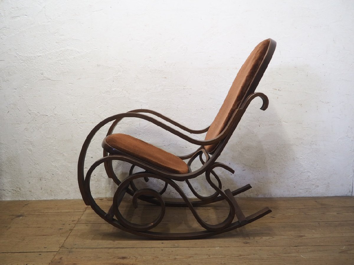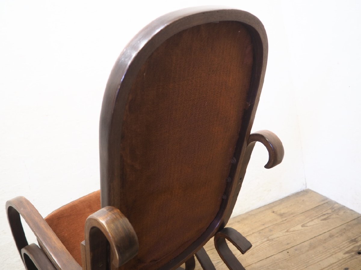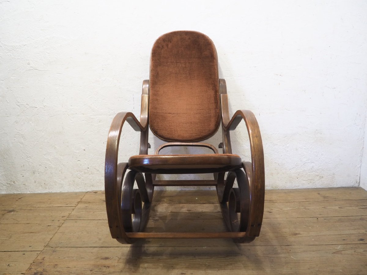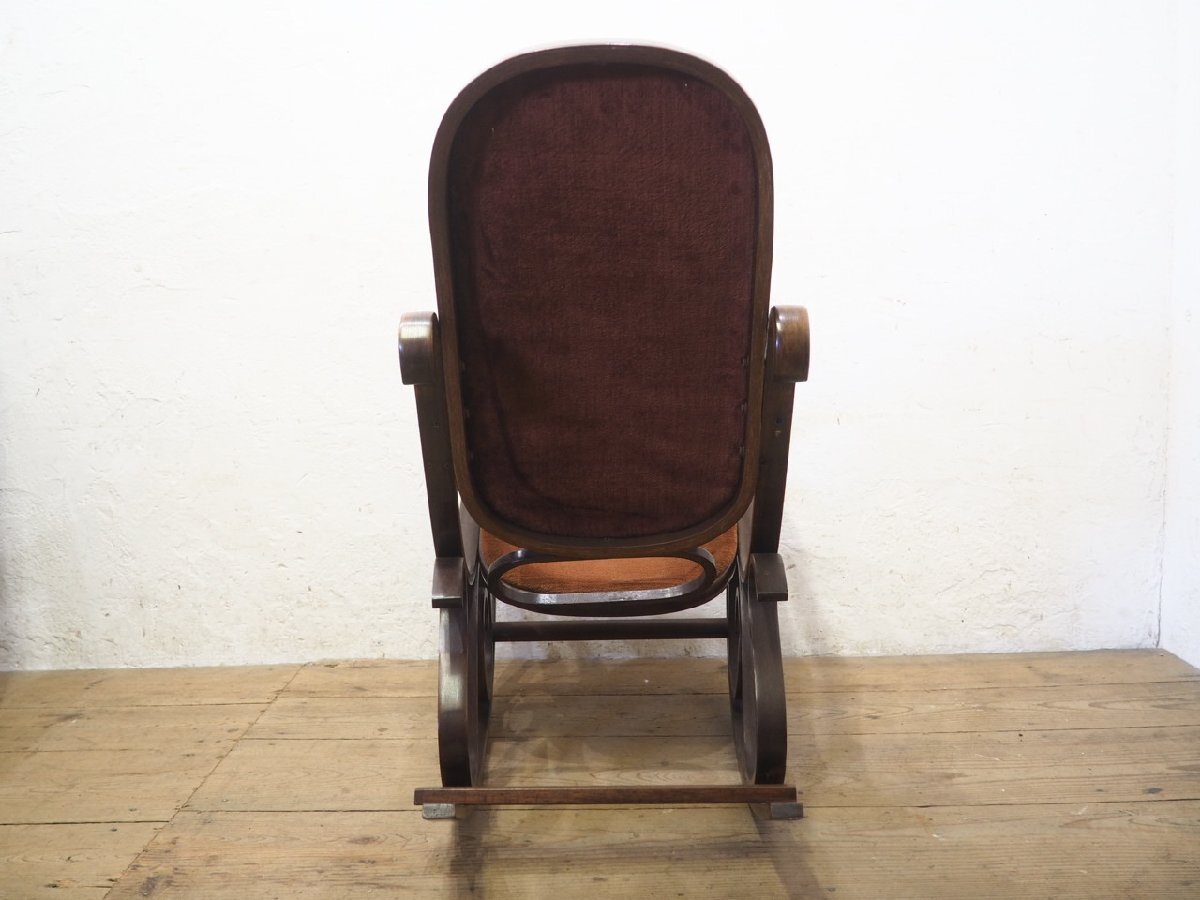 タ荷N0579◆レトロモダンな曲木の古い木製ロッキングチェア◆椅子 イス カフェ インテリア リビング アトリエ ヴィンテージP(ヤD)笹4
