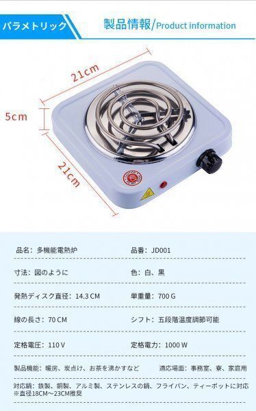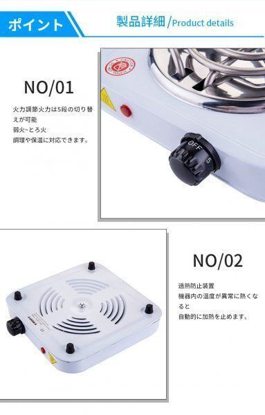 過熱保護、不粘着コーティングと1000 Wパワー、耐久性のあるステンレス加熱管、このバーナーは加熱が迅速で、均一に食べ物を調理でき、安全、迅速、高効率です