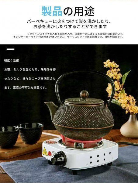 1000 Wポータブル卓上コンロは、炊事、湯沸かし、朝食の卵作り、お茶出しなど、家庭のキッチンやアウトドアで活躍してくれます。