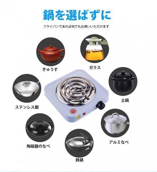 電動コイルバーナーには表示灯付きの開閉ボタンがあり、サーモスタットで熱量を調節することができ、コントロールノブをお客様の食べ物に適する温度設定に回転させるだけで、操作が便利である。この温度調節可能な電気バーナーは多くの調理器具と互換性があります