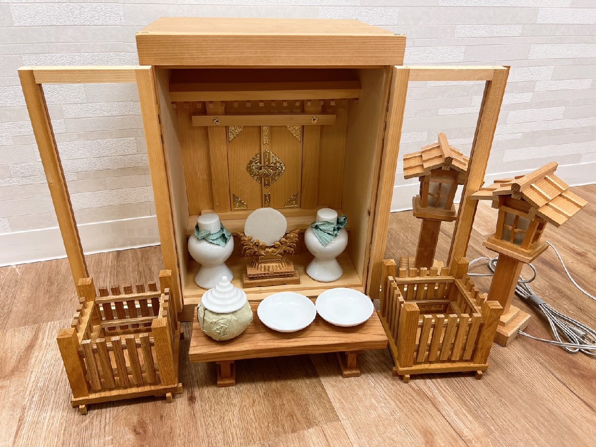 1円 神棚 神具 箱宮 付属品 色々 春日灯籠 鏡 皿 水器 瓶子 一式 現状未使用保管品【AN015】
