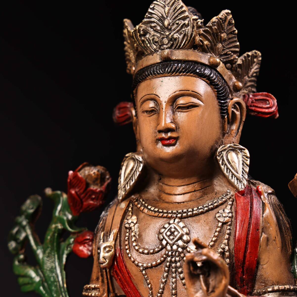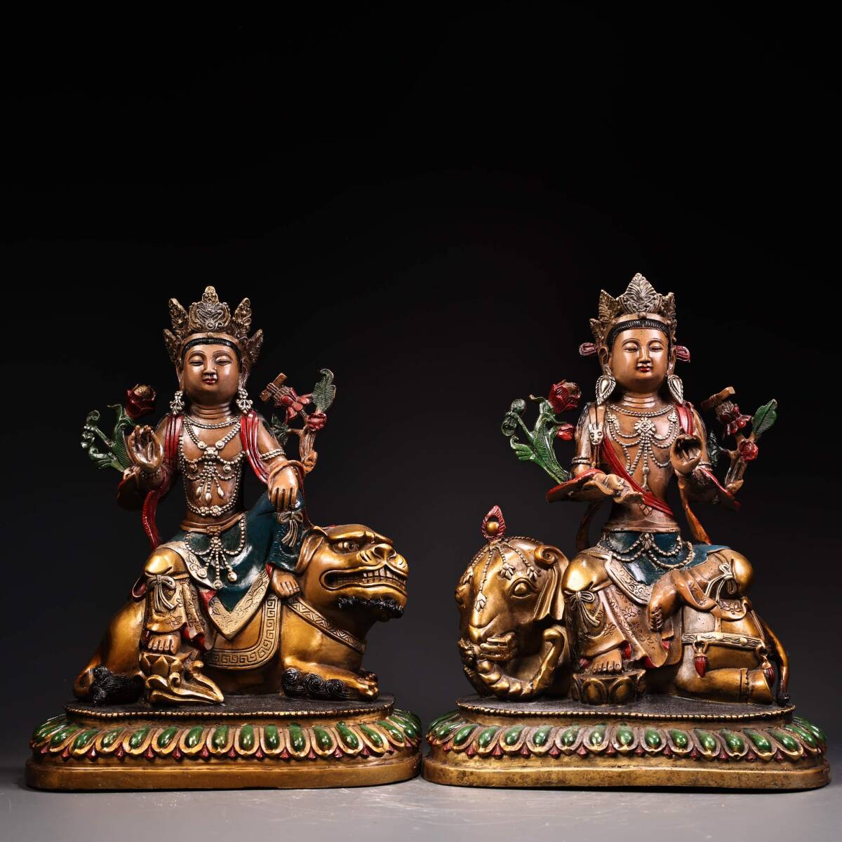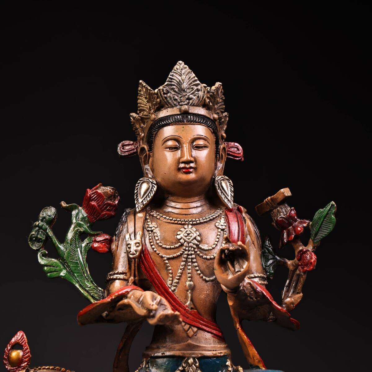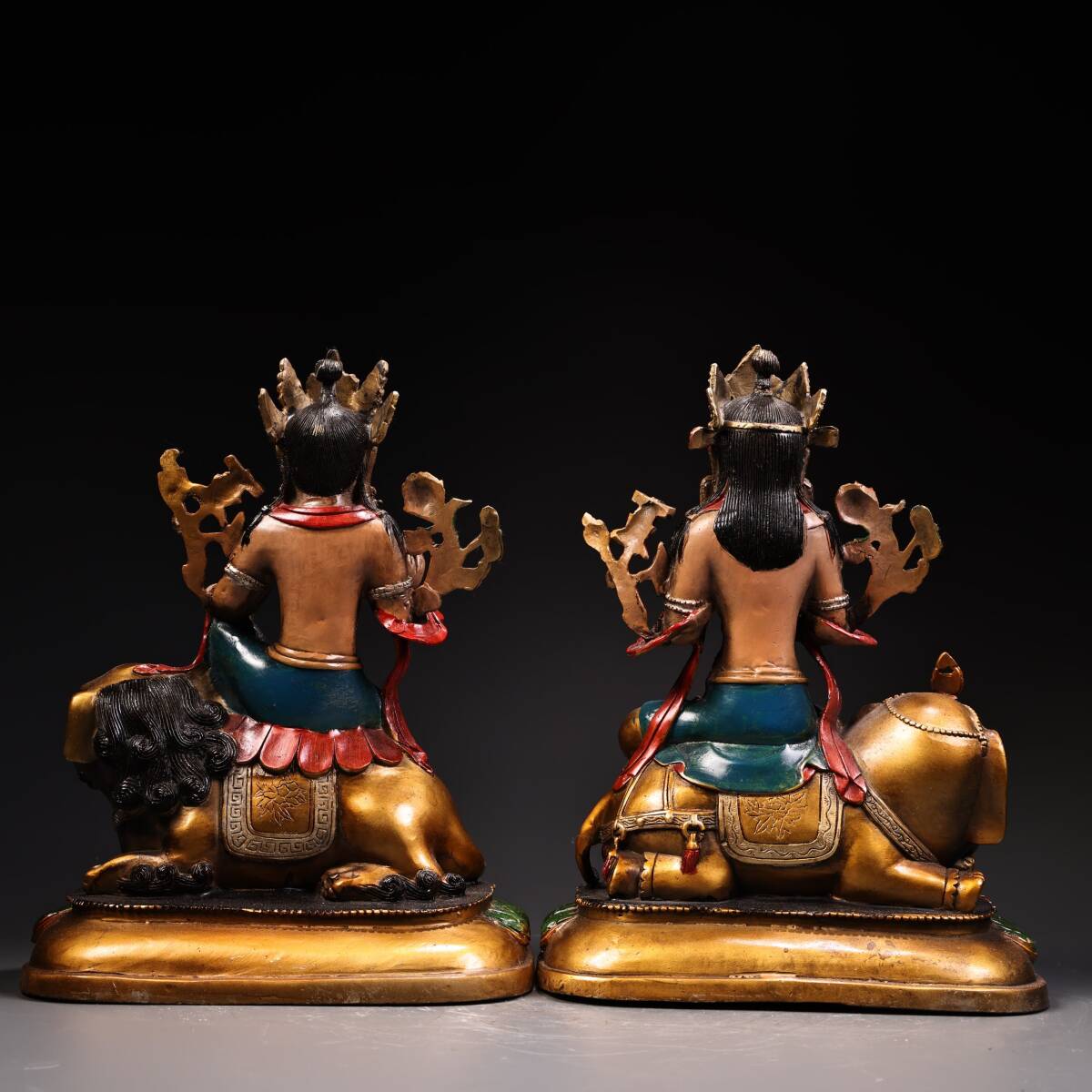 唐物 清 純銅 全銅 彩繪描金文殊菩薩 仏像 奉納されていた 供養品 銅製 銅器 極細工 古美術品 中国古玩 骨董品 D611