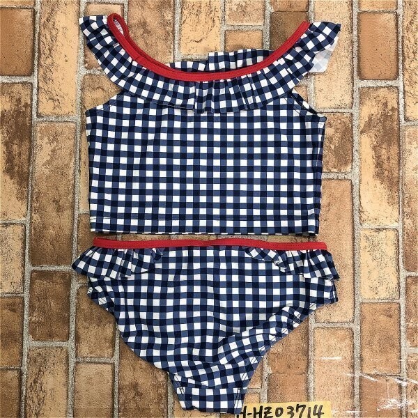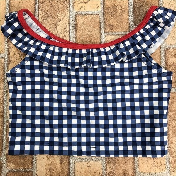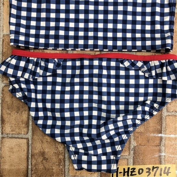 タグなし新品!OSHKOSH オシュコシュ キッズ 女の子 ギンガムチェック 水着 セパレート 上下セット 10 紺白赤