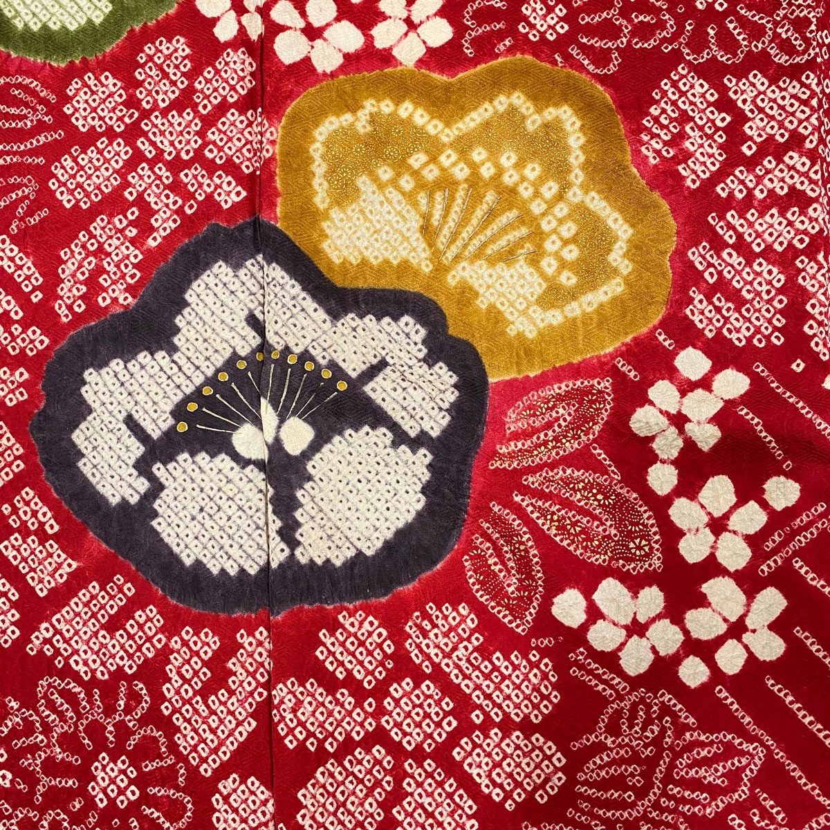 | 振袖 名品 花車 菊 絞り 金彩 赤 袷 身丈163 裄丈66.5 M 正絹 【中古】 |
