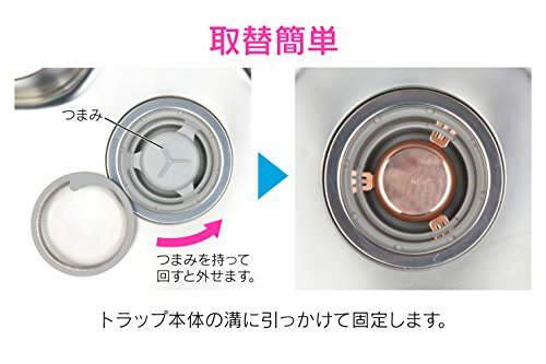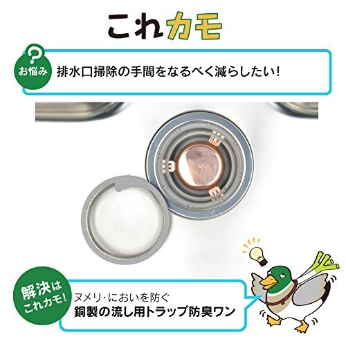 説明 ●銅イオンの抗菌効果でヌメリやにおいを防ぎます。 ●掃除が大変な場合の丸替えにお勧めです。 ●ワンの回りの溝に水をためることで排水管からの臭気と害虫の侵入を防ぎます。 ●破損や汚れによる交換に最適です。 ●マンションやアパートなどの賃貸住宅の原状回復に最適です。 【注意事項】 ●使用を重ねるうちに黒ずんでいき、しだいに薄青みがかった皮膜に変色しますが、銅イオンの抗菌効果は変わりません。