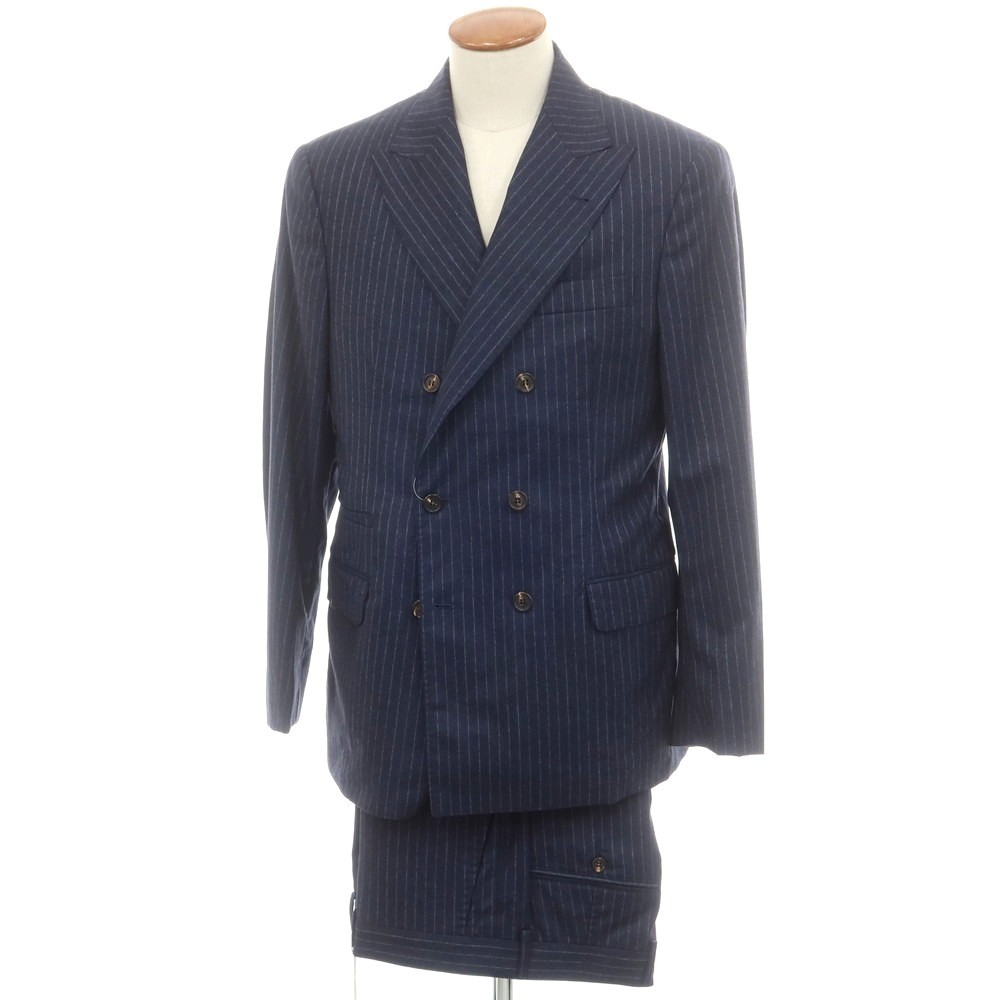 【新品】ブルネロクチネリ Brunello Cucinelli ウール ストライプ 6B ダブルスーツ【NVY】【サイズ48】【748892】