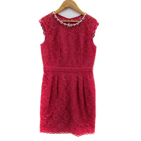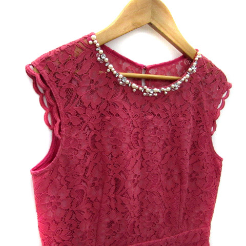 リランドチュール Rirandture パーティードレス ワンピース ノースリーブ ひざ丈 総レース フェイクパール 2 ピンク /MA2 レディース