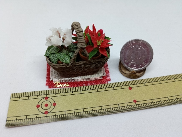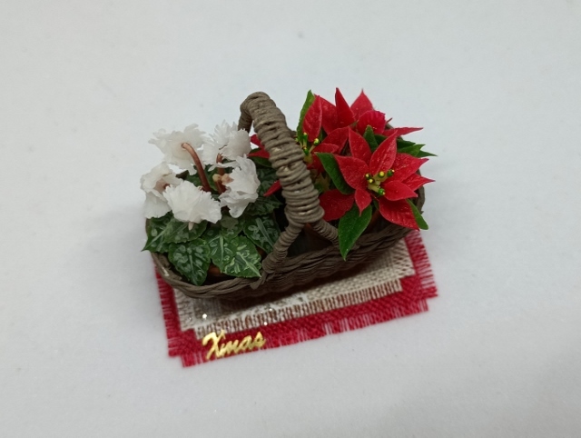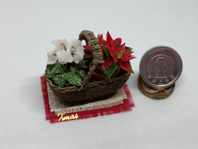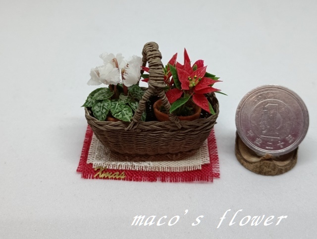 maco's miniature flower ♪ シクラメンとポインセチアのバスケット寄せ鉢♪