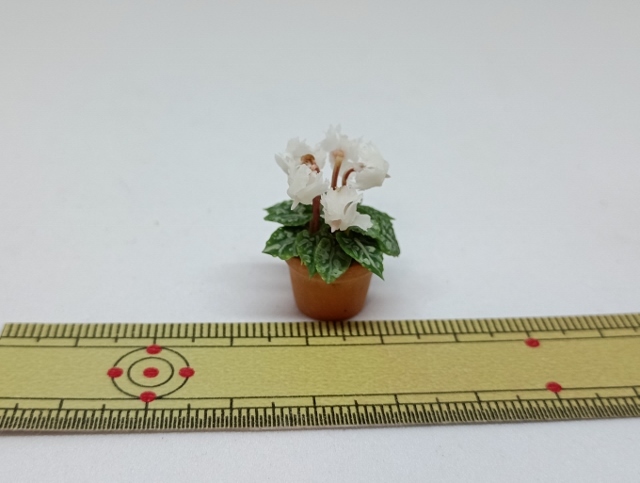 白フリンジ咲きのシクラメン・赤ポインセチアを製作し、市販植木鉢に植え自作バスケットに寄せ鉢しました。